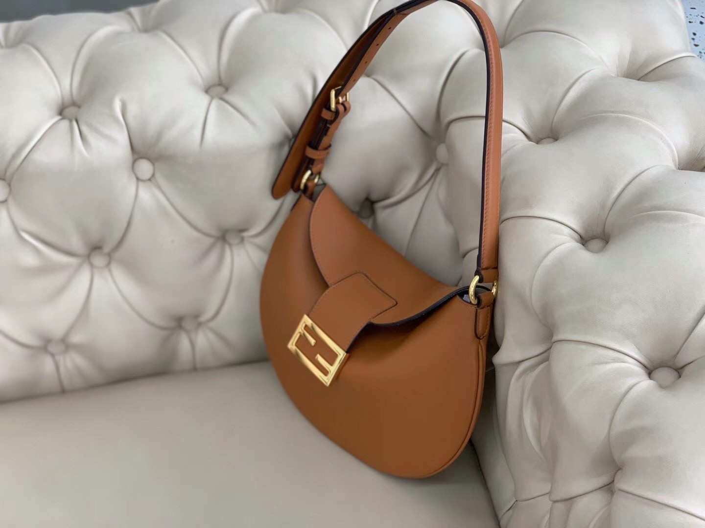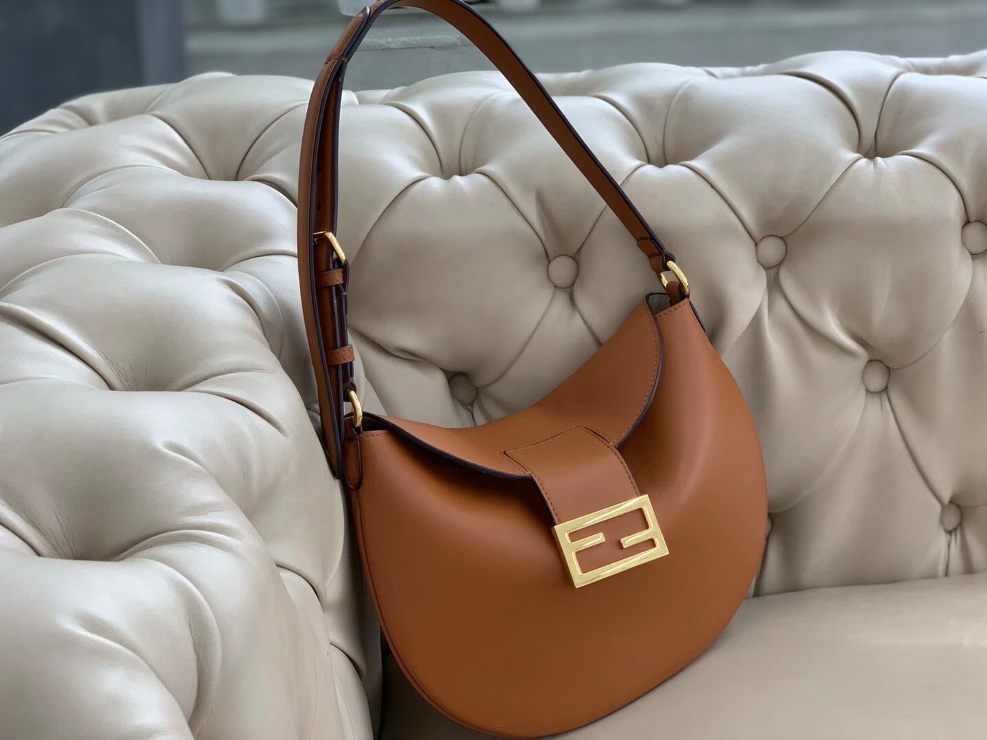 Fendi Small Croissant Hobo Bag In Brown Leather