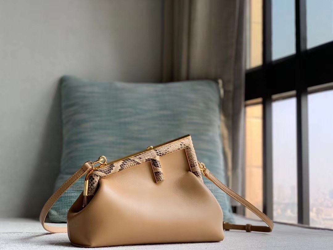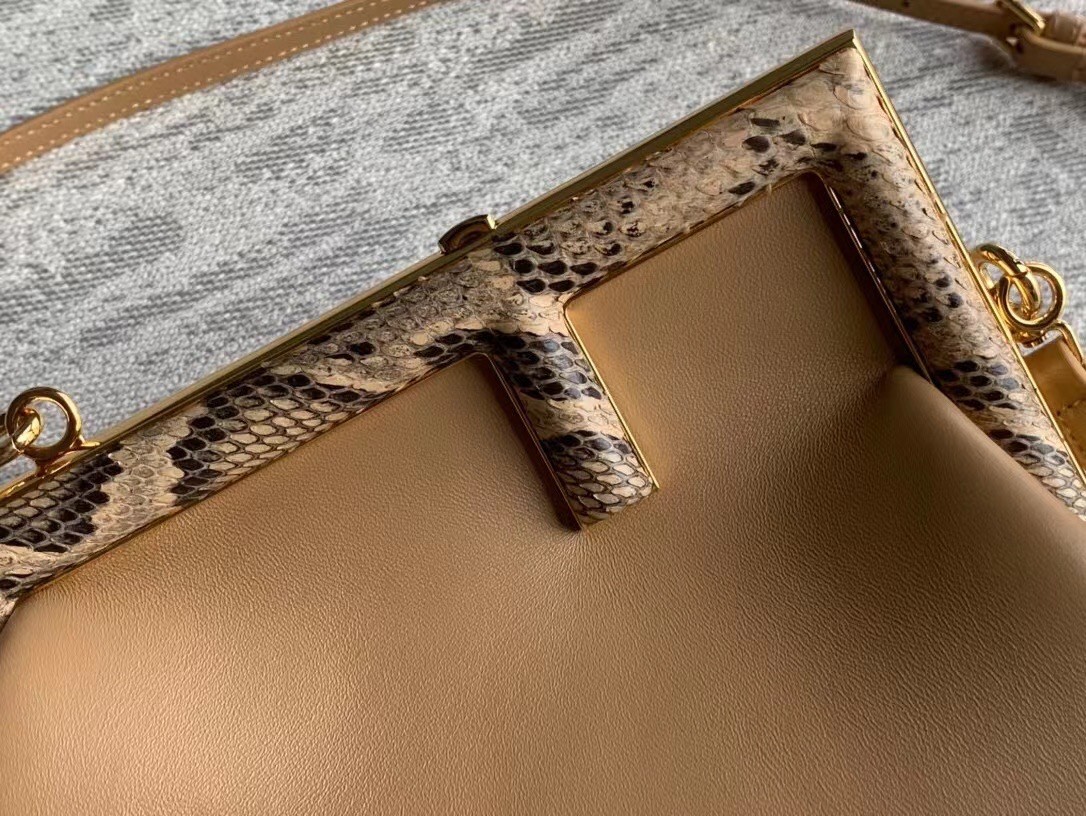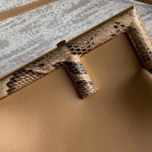 – Oversize metal F clasp bound in luxury tone on tone python leather