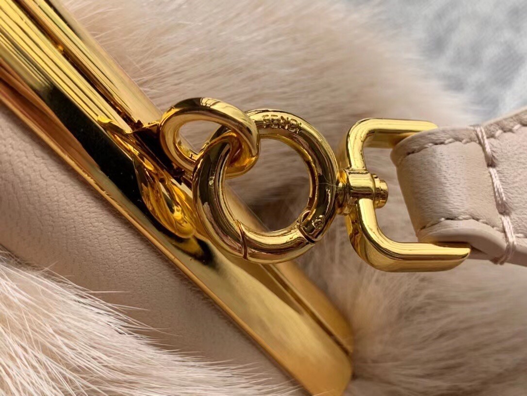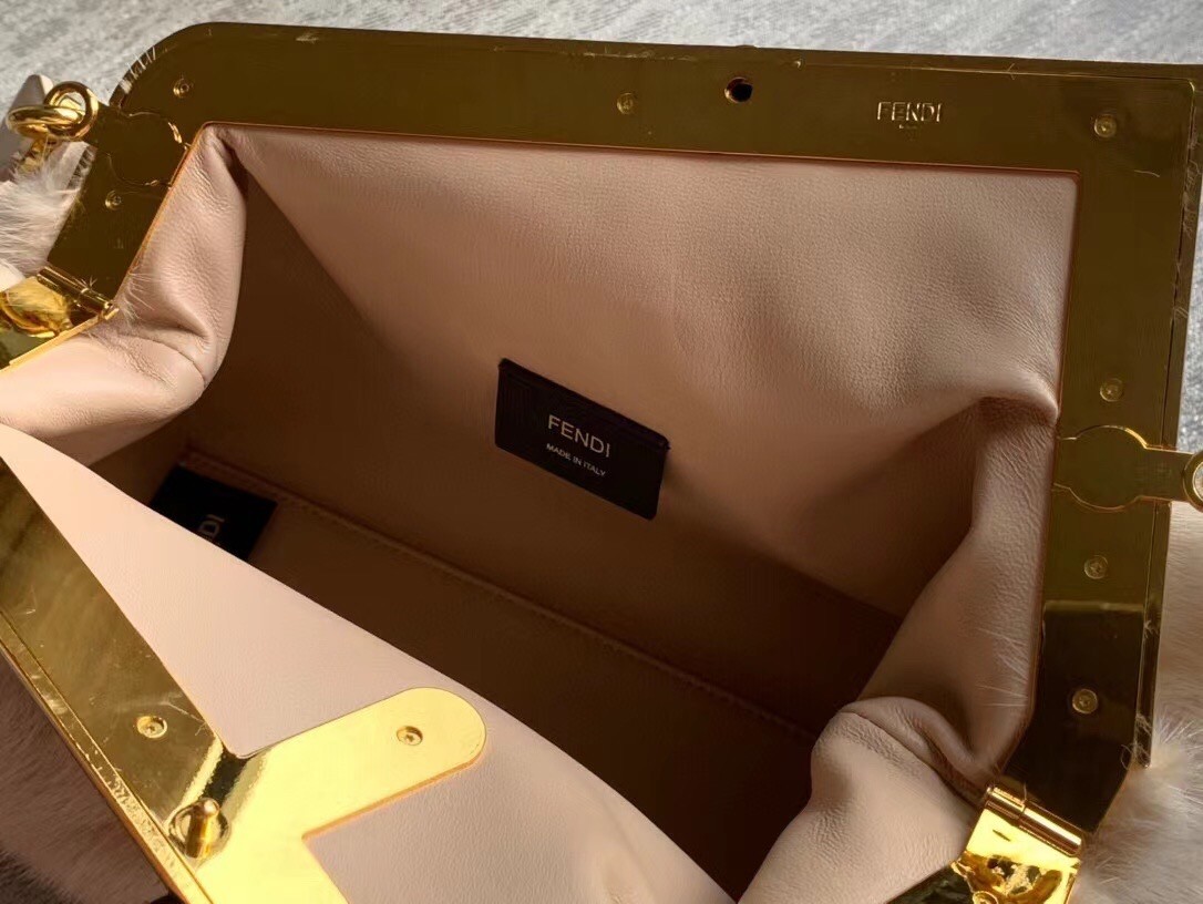 – Oversized metal F clasp bound with tone on tone nappa leather