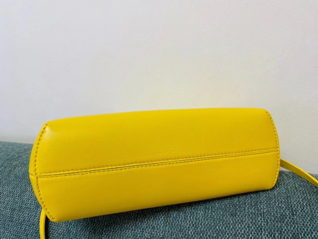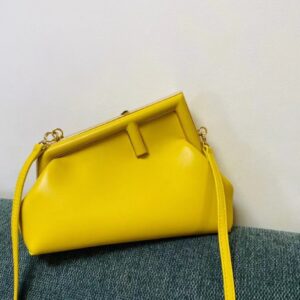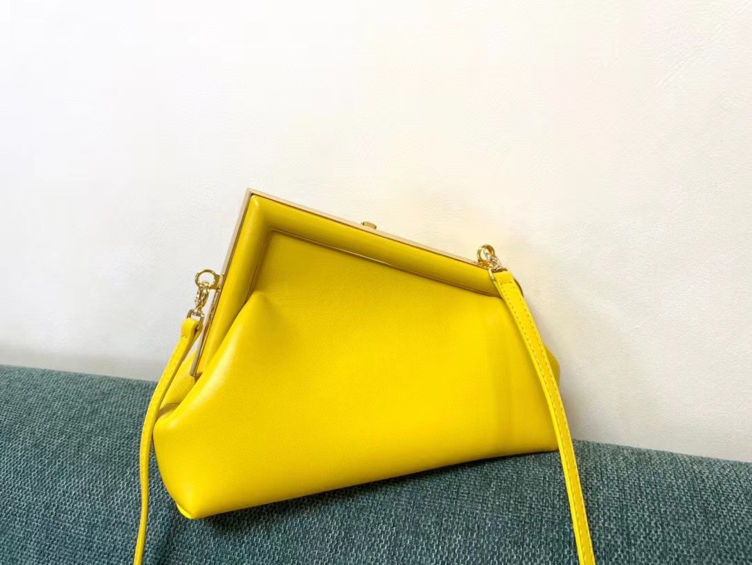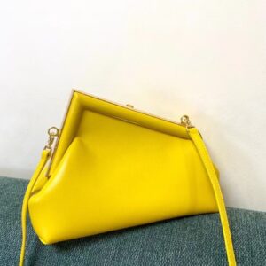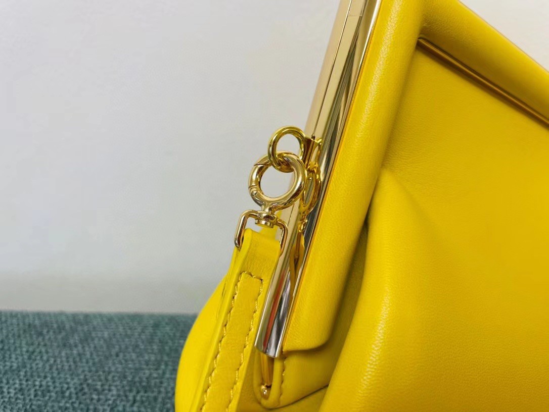 – Oversized metal F clasp bound with tone on tone nappa leather