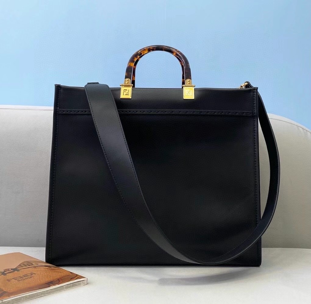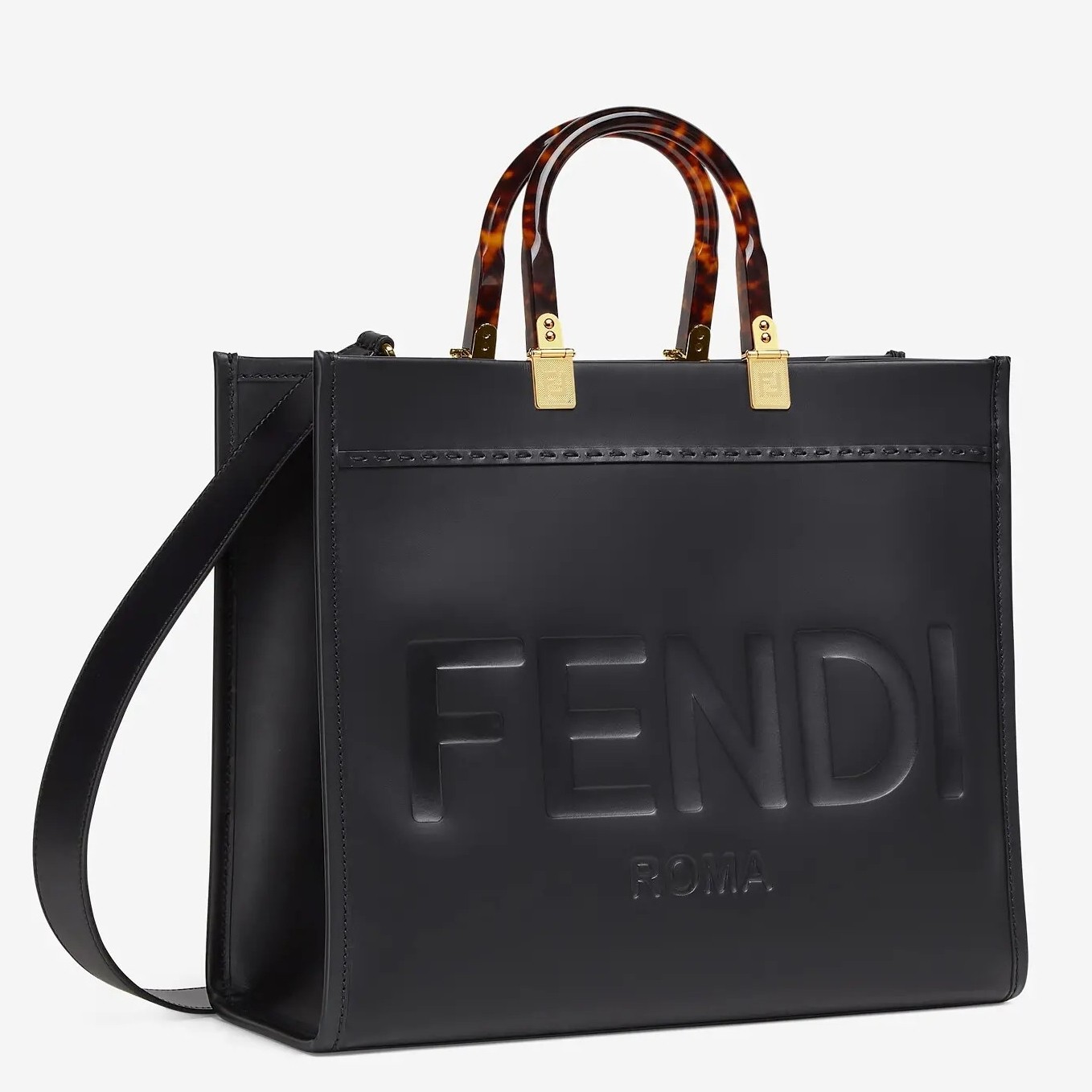 Fendi Sunshine Medium Shopper Bag In Black Calfskin