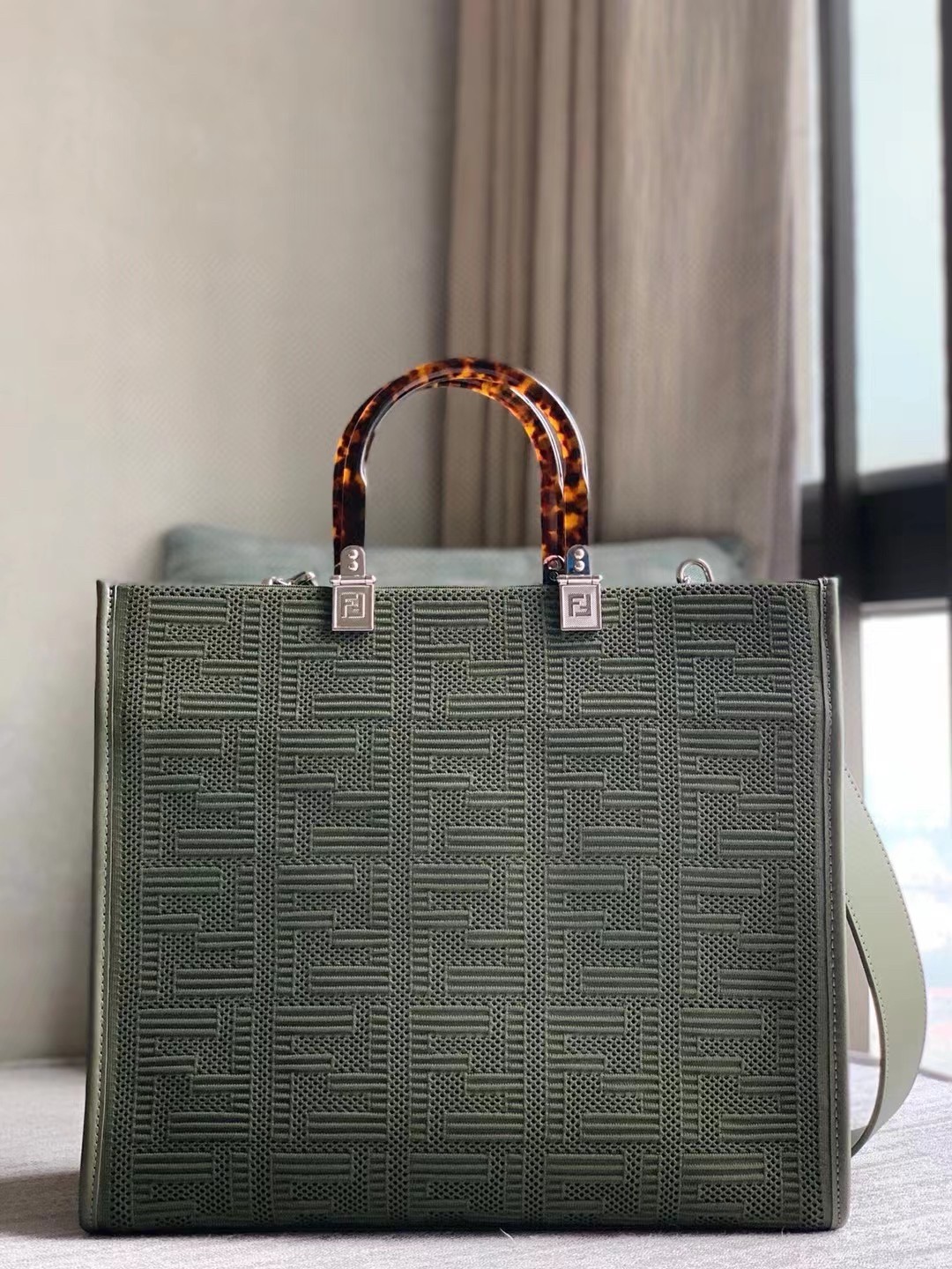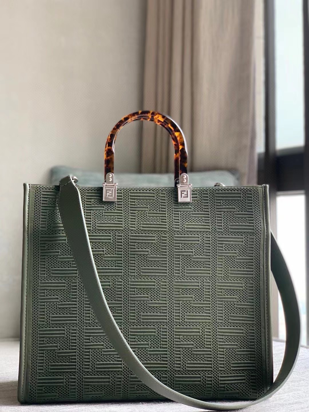 Fendi Sunshine Medium Shopper Bag In Green FF Fabric