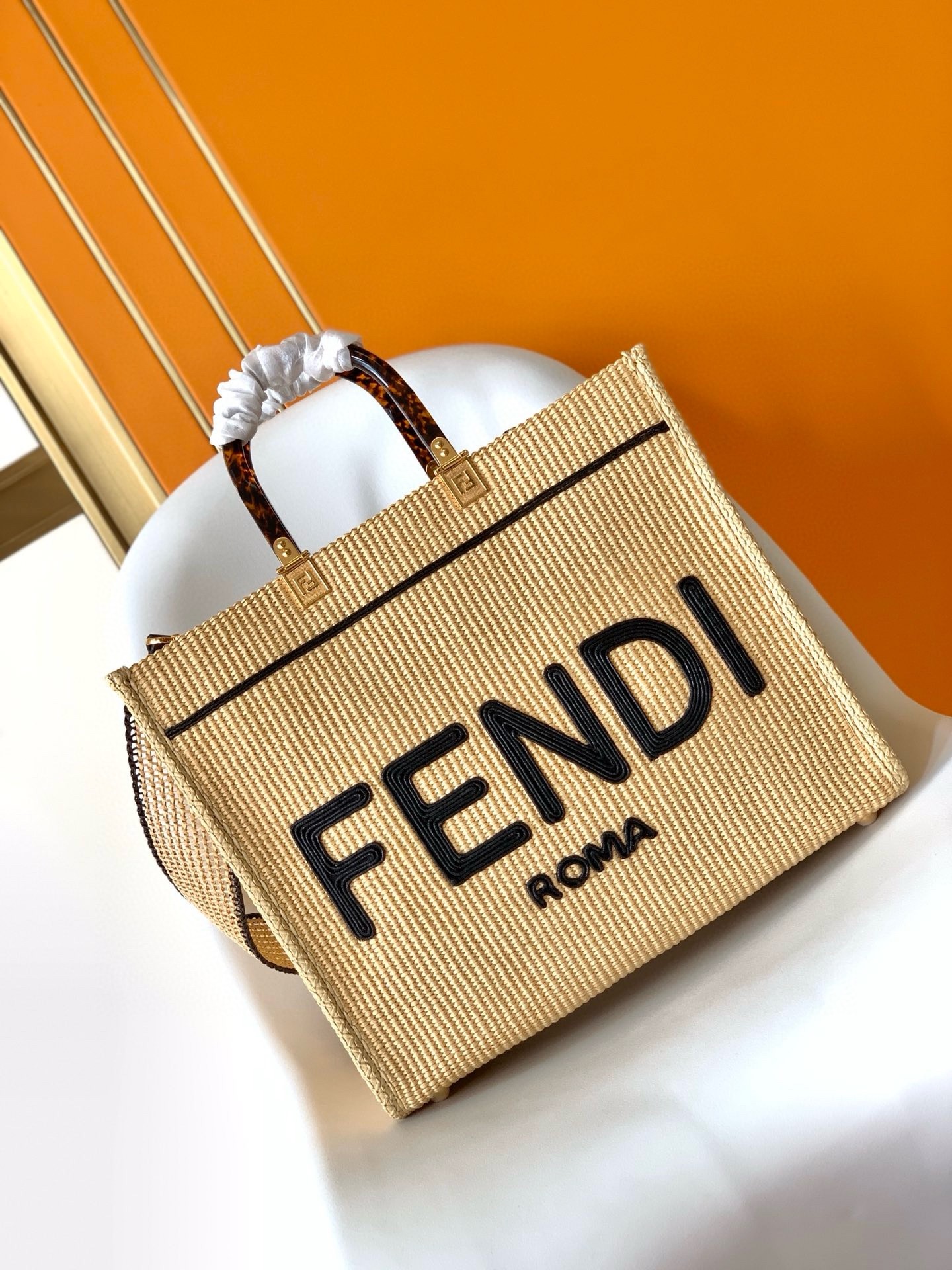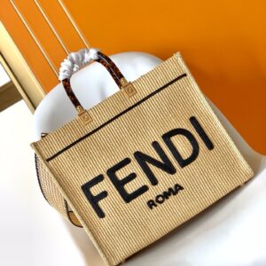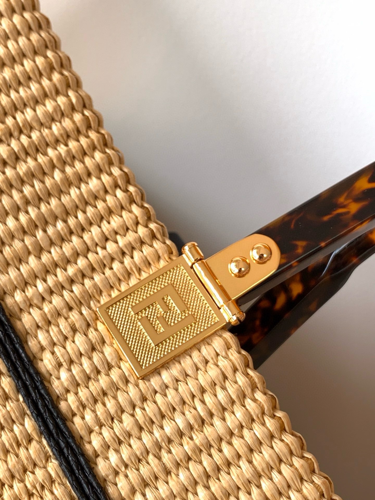 – Black straw FENDI ROMA embroidery