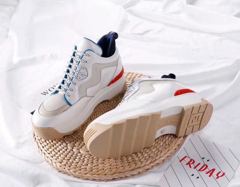 Fendi T-Rex Sneakers In White Calfskin And Technical