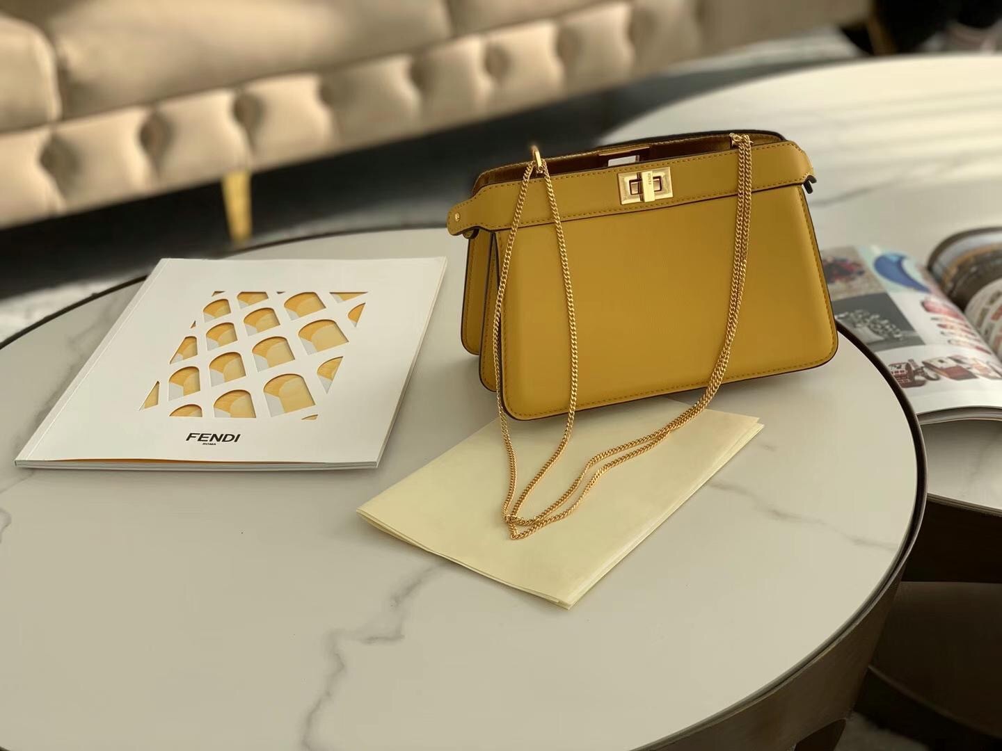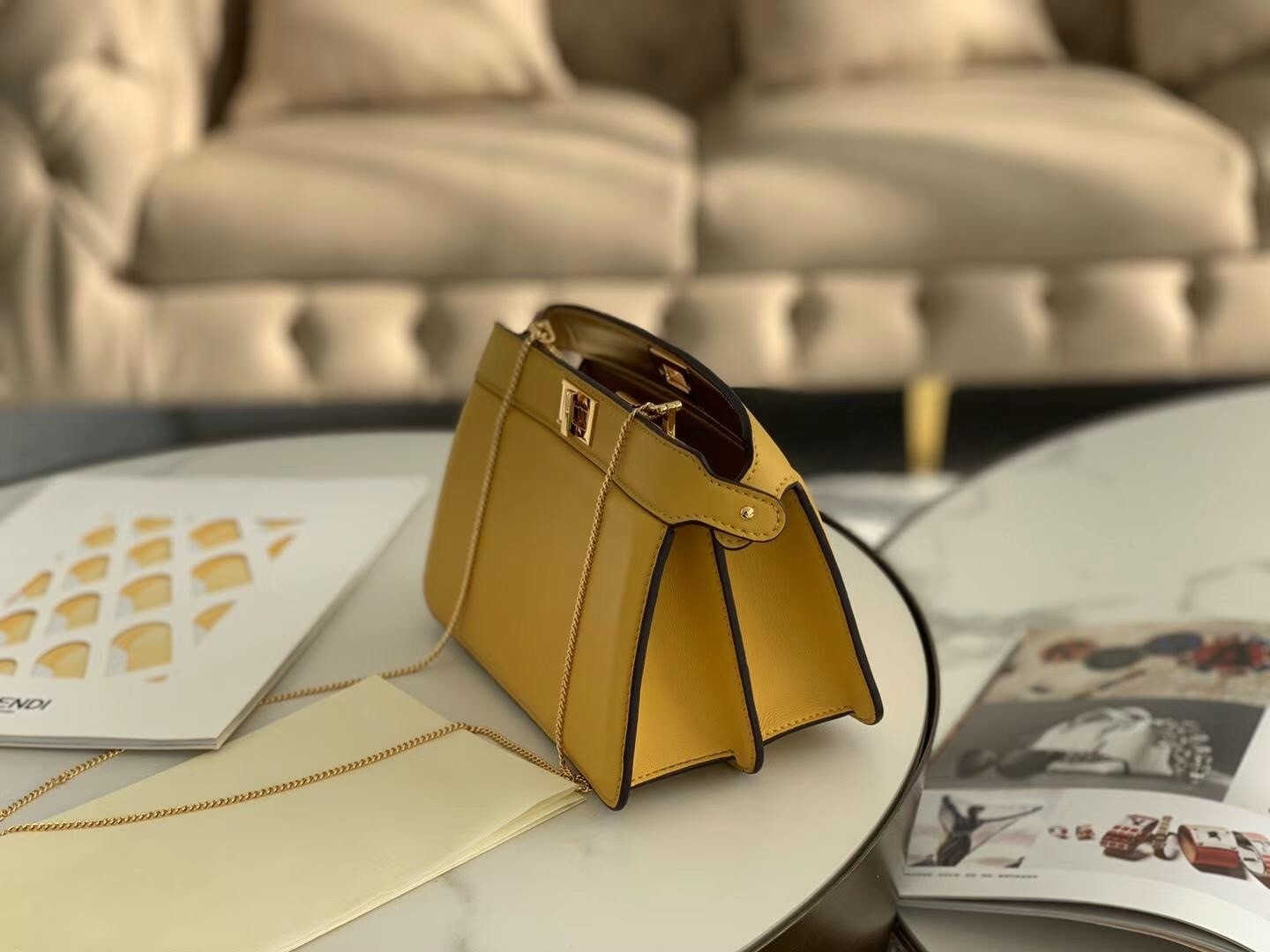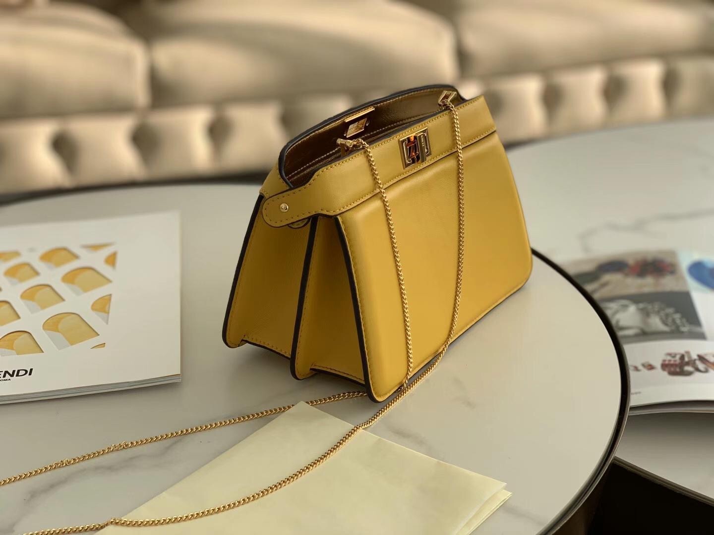 Fendi Yellow Peekaboo ISeeU Pochette Bag