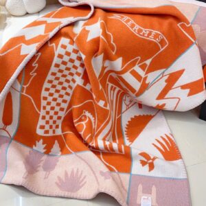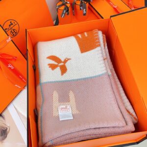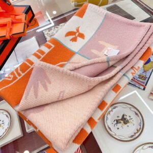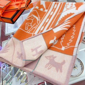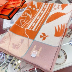 Hermes Avalon Epopee Blanket in Mandarine Wool and Cashmere