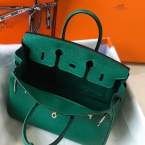 Hermes Birkin 25cm Bag In Malachite Clemence Leather
