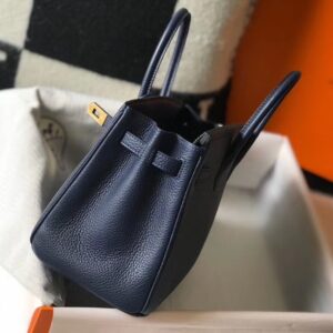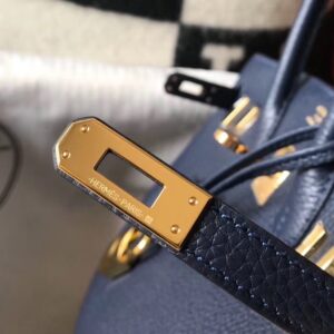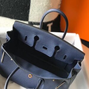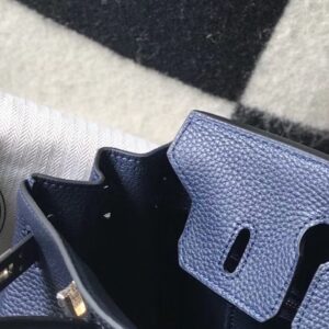 Hermes Birkin 25cm Bag In Navy Blue Clemence Leather