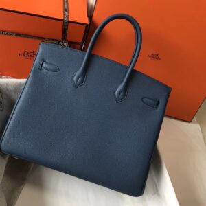 Hermes Birkin 35cm Bag In Blue Agate Clemence Leather
