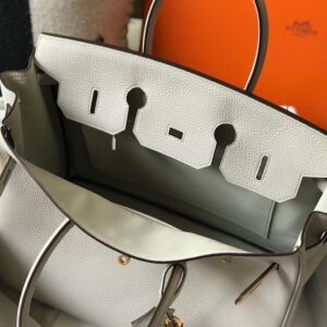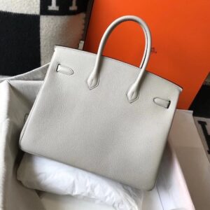 Hermes Birkin 35cm Bag In Pearl Grey Clemence Leather GHW
