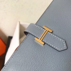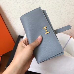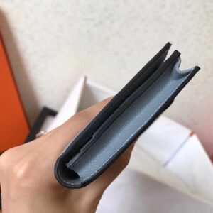 Hermes Blue Lin Epsom Bearn Gusset Wallet