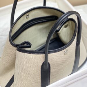 Hermes Garden Party 30cm Bag in Toile and Black Leather