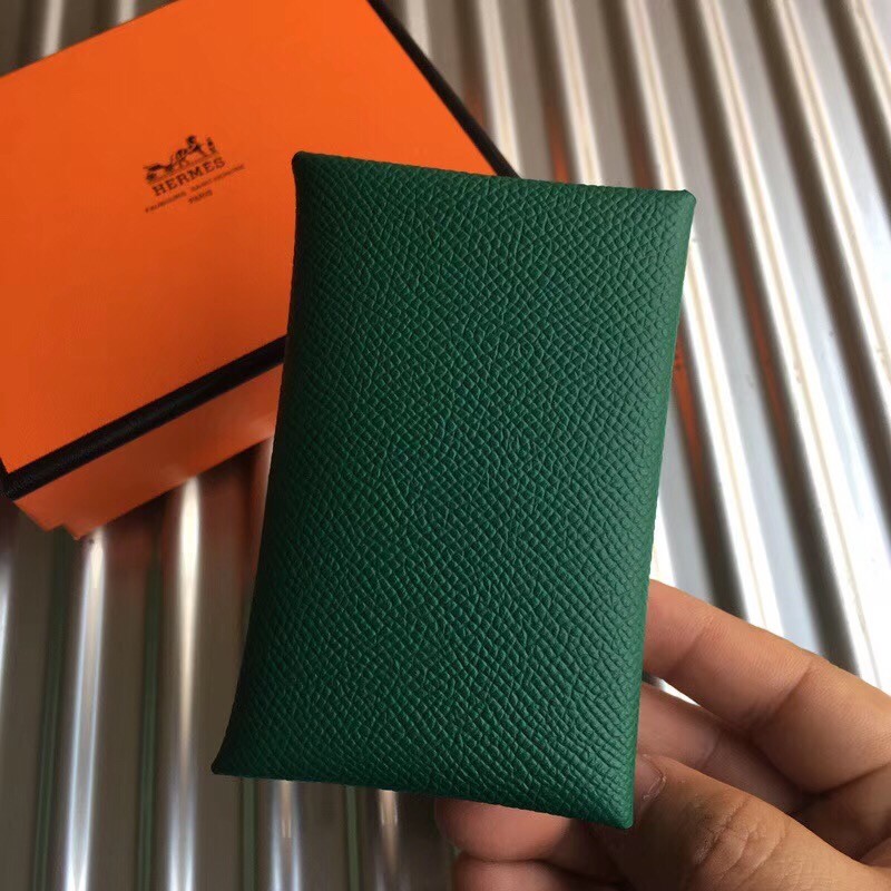 Hermes Green Epsom Calvi Card Holder