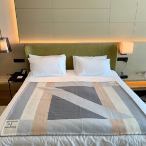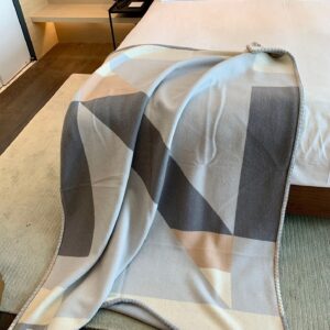 Hermes H Drapeau Blanket in Acier and Perle Cashmere