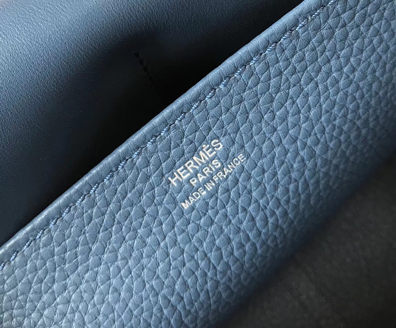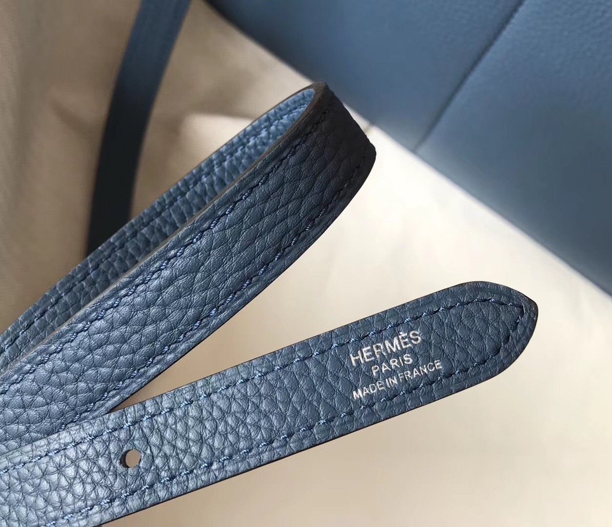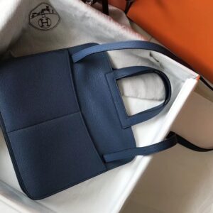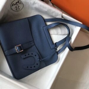 Hermes Halzan 31cm Bag In Blue Agate Clemence Leather