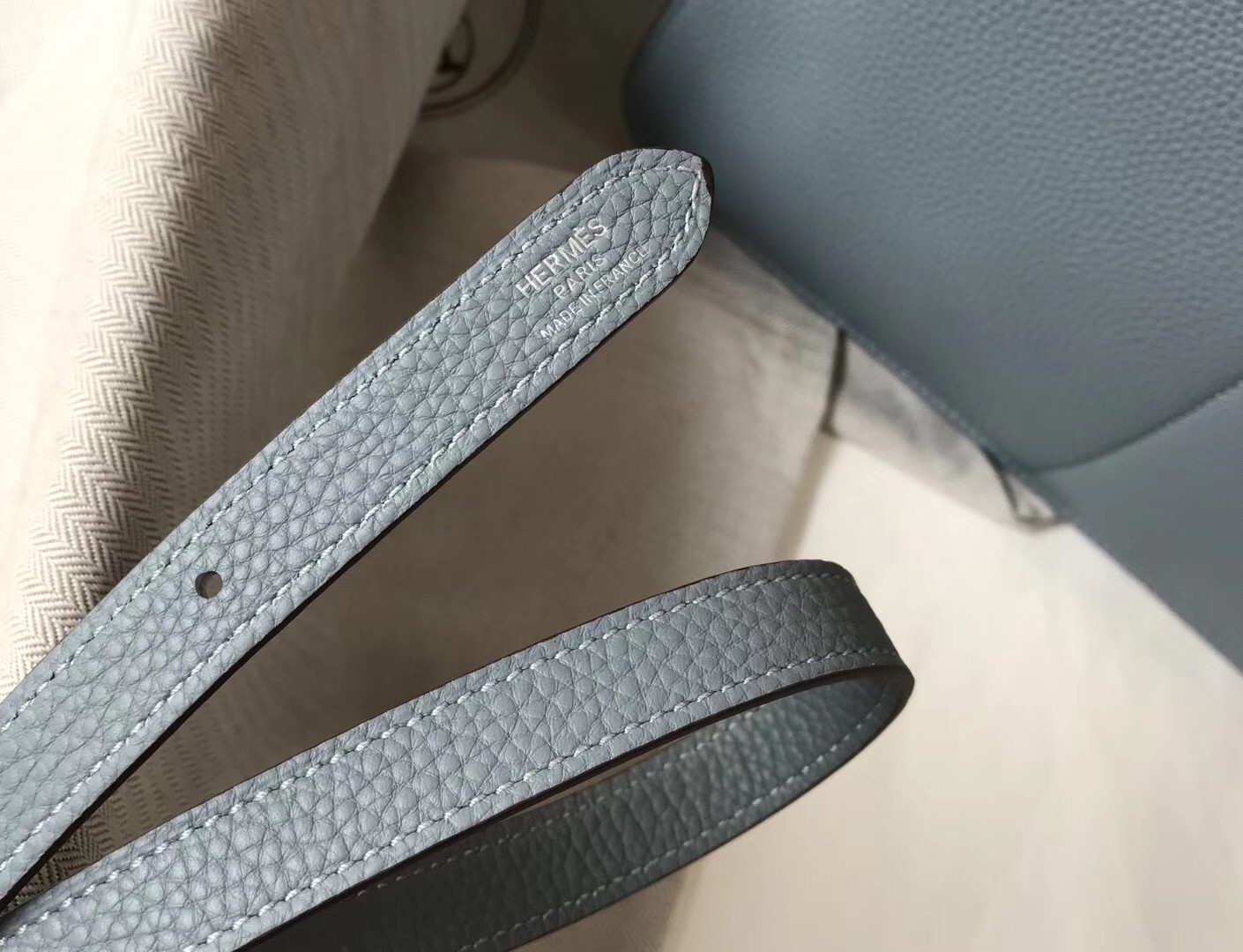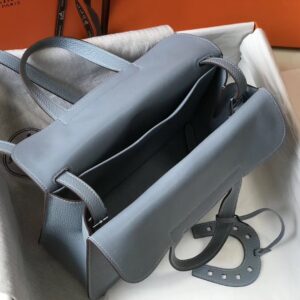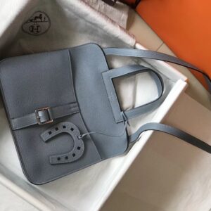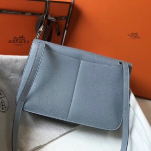 Hermes Halzan 31cm Bag In Blue Lin Clemence Leather