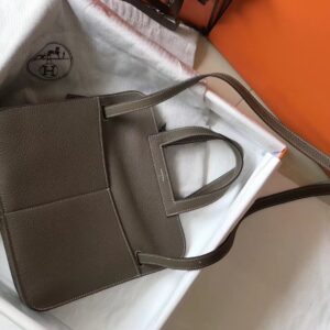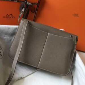 Hermes Halzan 31cm Bag In Taupe Clemence Leather