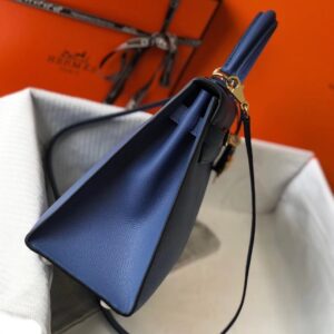 Hermes Kelly 28cm Sellier Bag In Blue Agate Epsom Leather