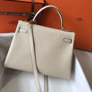 Hermes Kelly 32cm Retourne Bag In Beton Clemence Leather