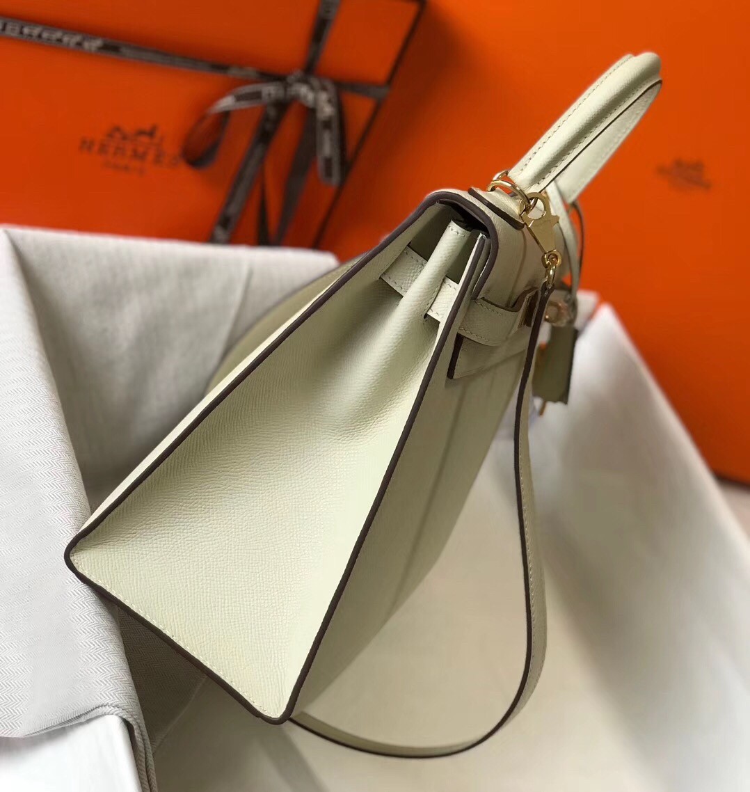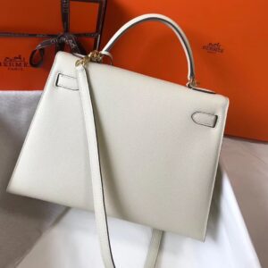 Hermes Kelly 32cm Sellier Bag In White Epsom Leather