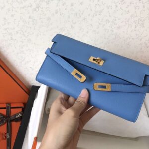 Hermes Kelly Classic Long Wallet In Blue Jean Epsom Leather
