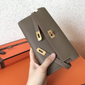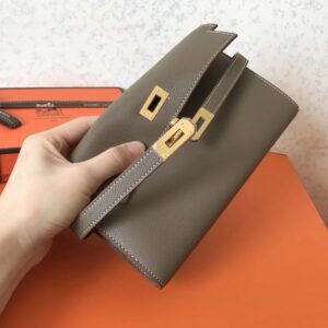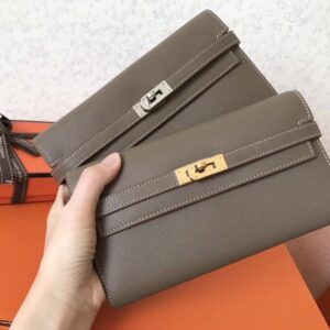 Hermes Kelly Classic Long Wallet In Taupe Epsom Leather