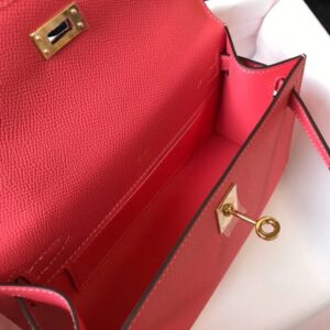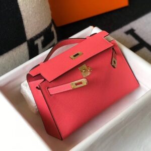 Hermes Kelly Pochette Bag In Rose Lipstick Epsom Leather