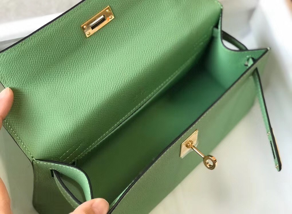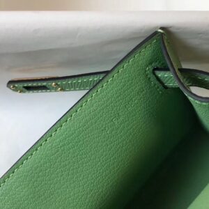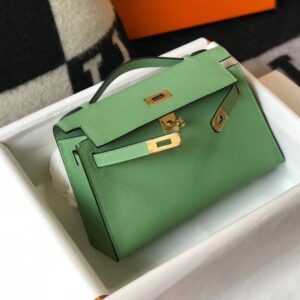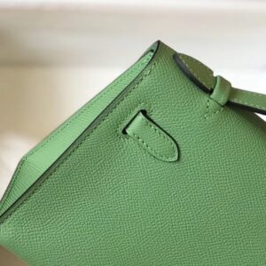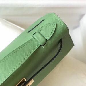 Hermes Kelly Pochette Bag In Vert Criquet Epsom Leather