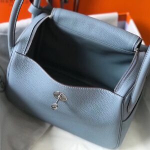Hermes Lindy 26cm Bag In Blue Lin Clemence With PHW