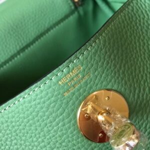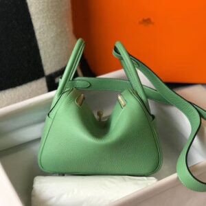 Hermes Lindy Mini Bag In Vert Criquet Clemence Calfskin