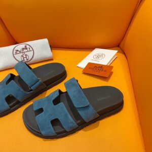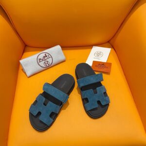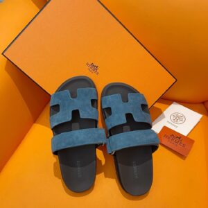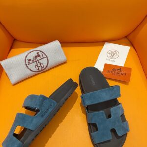 Hermes Men's Chypre Sandals in Blue Suede Calfskin