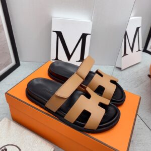 Hermes Men’s Chypre Sandals in Brown Calfskin