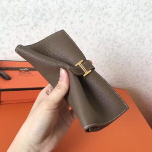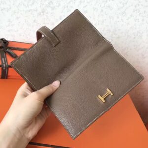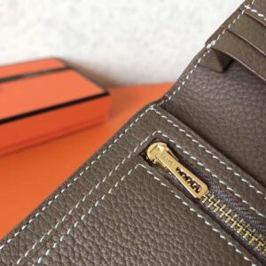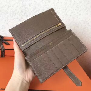 Hermes Taupe Clemence Bearn Gusset Wallet