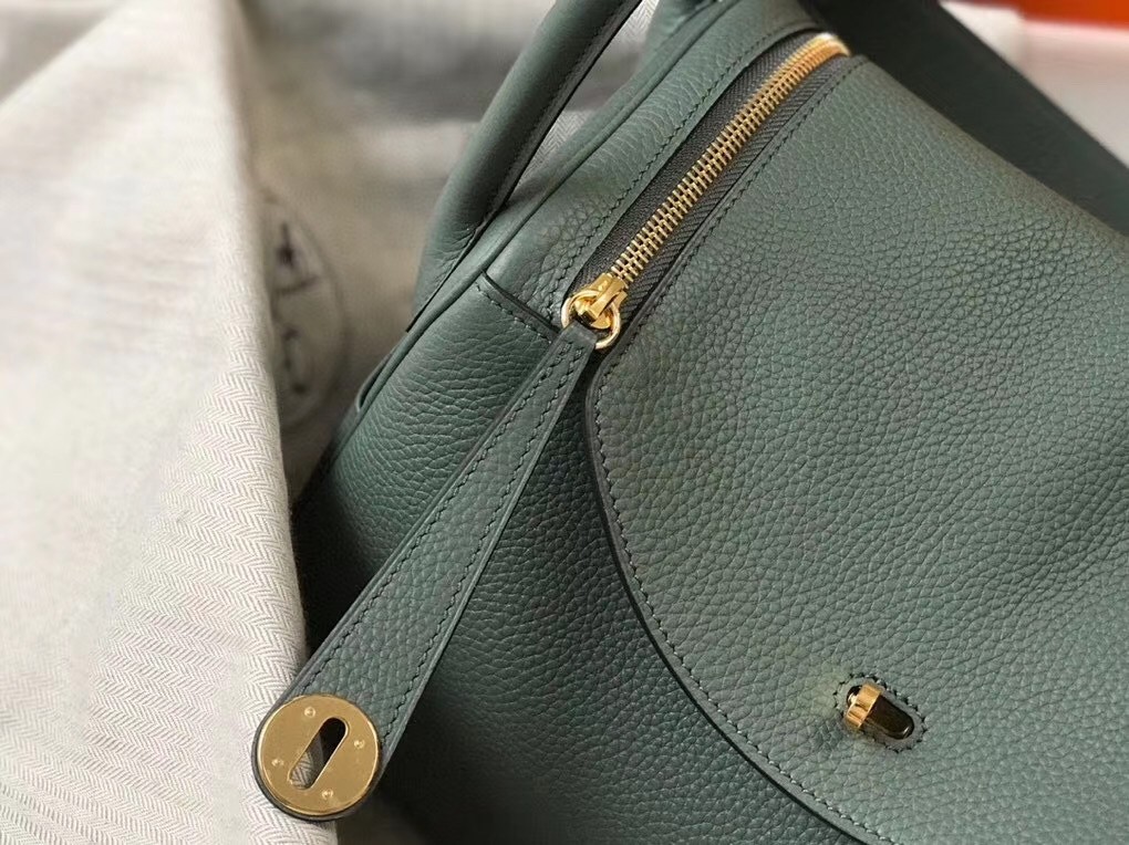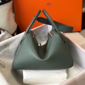 Hermes Vert Amande Clemence Lindy 30cm Bag with GHW