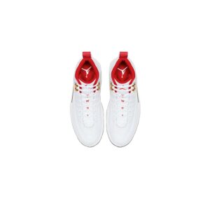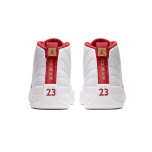 Jordan Brand welcomes with 2019 FIBA Basketball World Cup with the Air Jordan 12 “FIBA”, now available on StockX. FIBA (Originally known as the Fédération Internationale de Basketball Amateur) is an association of national organizations which governs the sport of basketball worldwide. Every four years, nations that are members of this organization compete for the World Cup. In 2017, Nike partnered with FIBA to become the official sponsor of the organization so it is fitting that Jordan pays tribute with this colorway. This AJ 12 is reminiscent of the existing “Rising Sun” colorway except it differs by displaying red detailing with gold accents. This design features a white leather upper detailed with different symbols from flags. Chinese text on the heel tab and the signature “TWO 3” embroidery on the tongue completes the design.