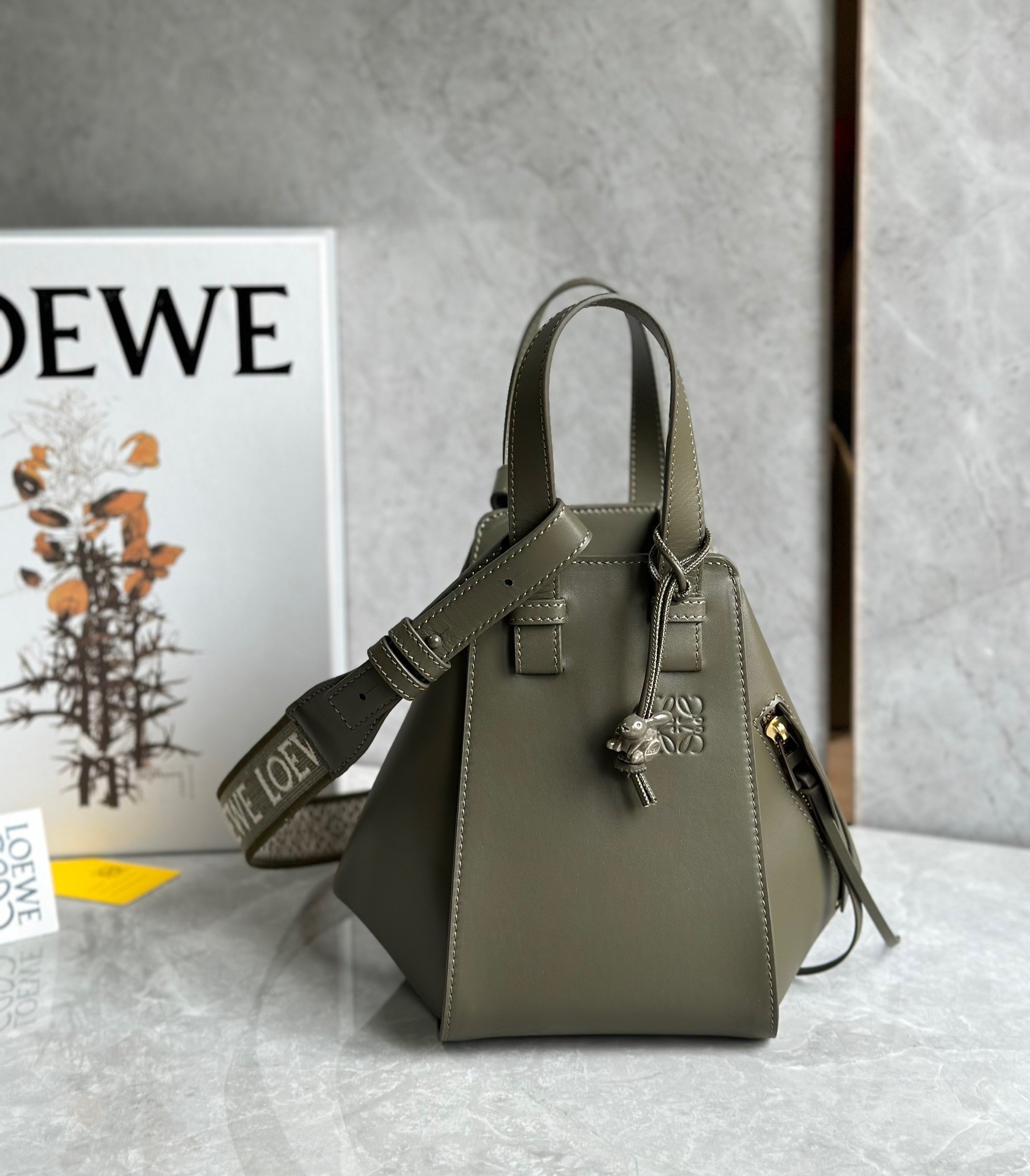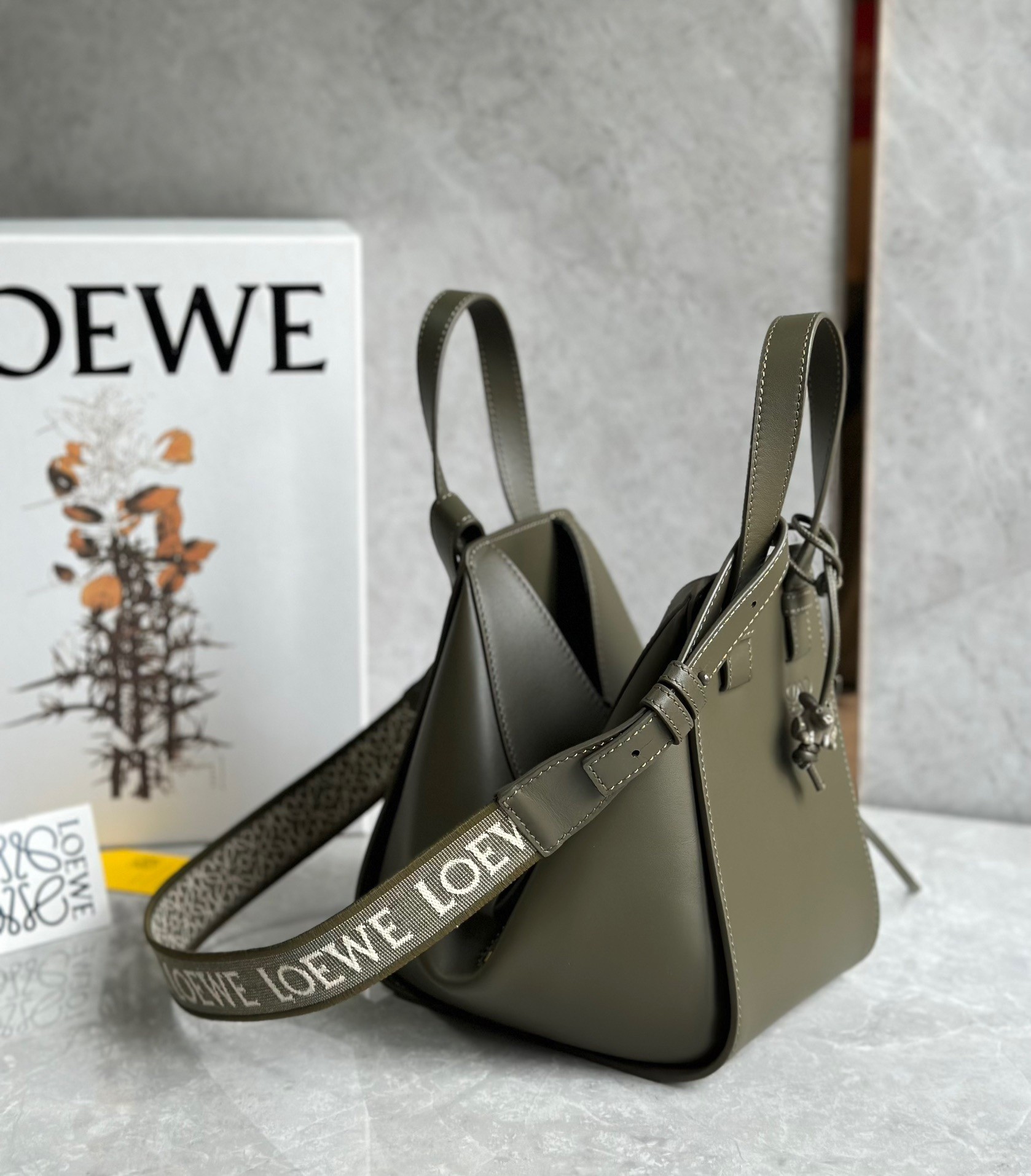 Loewe Compact Hammock Bag in Khaki Green Satin Calfskin