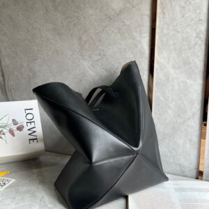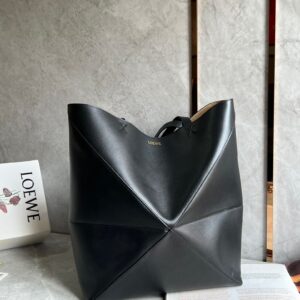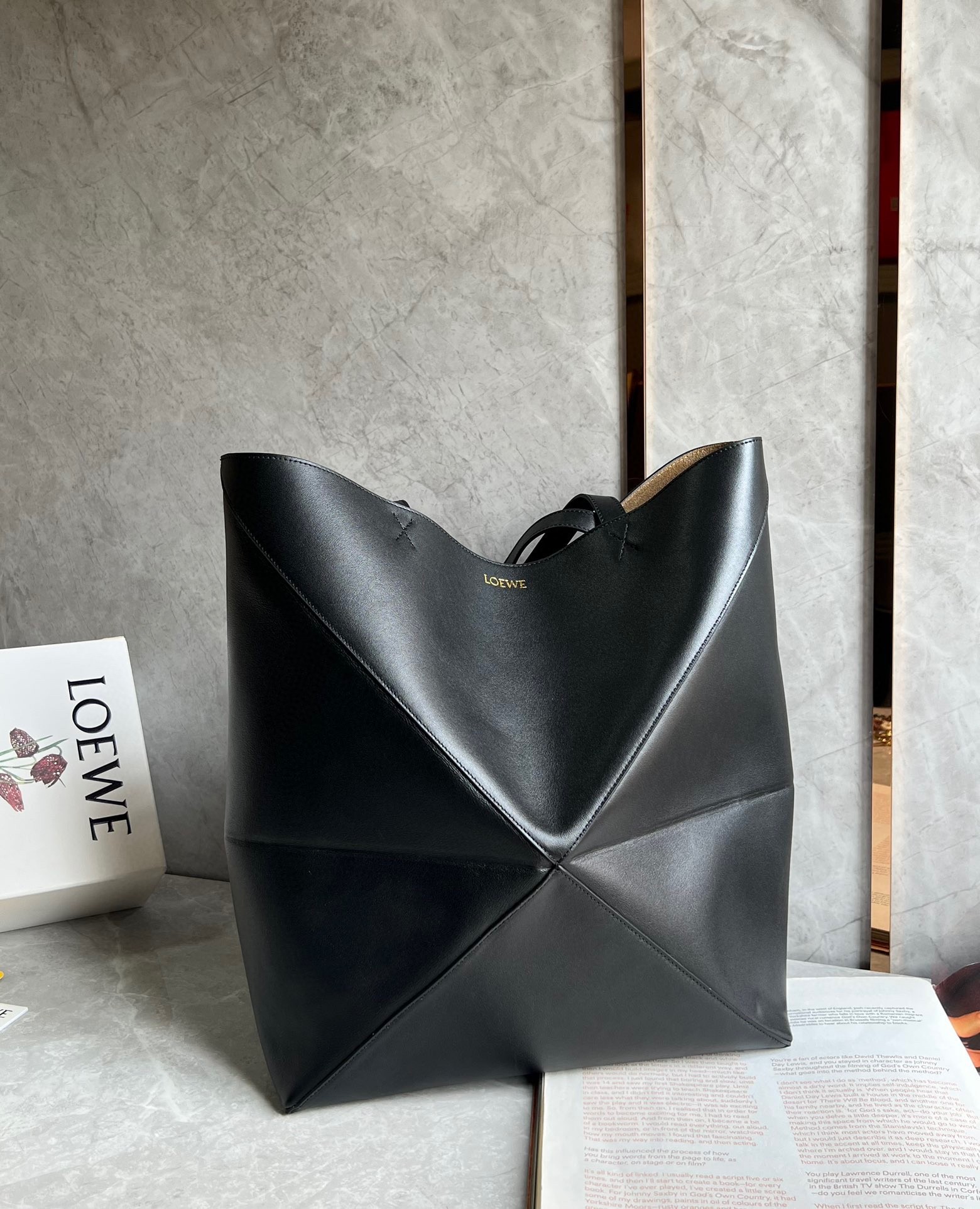 Loewe Large Puzzle Fold Tote Bag in Black Calfskin