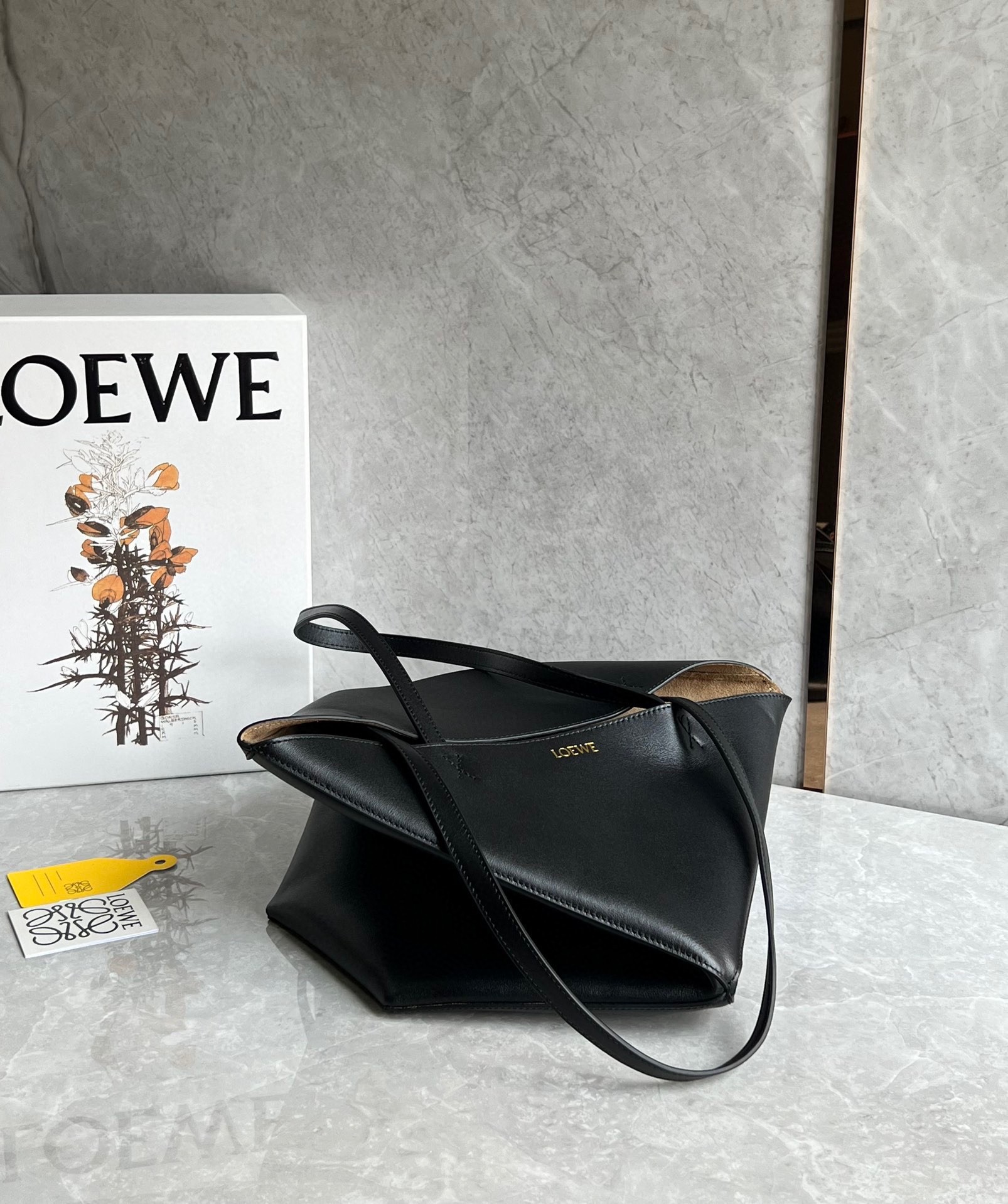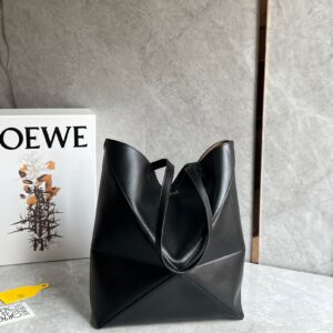Loewe Medium Puzzle Fold Tote Bag in Black Calfskin