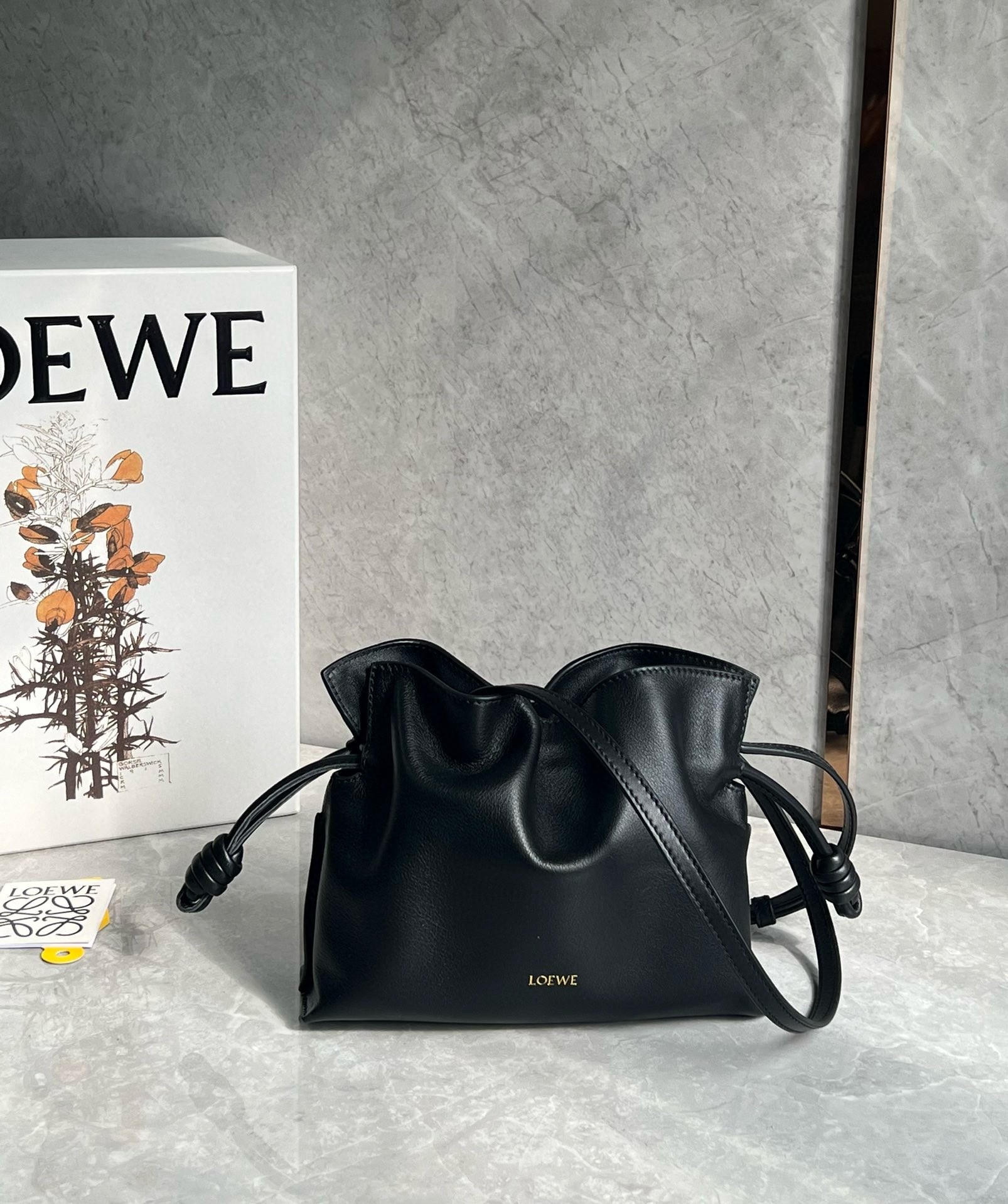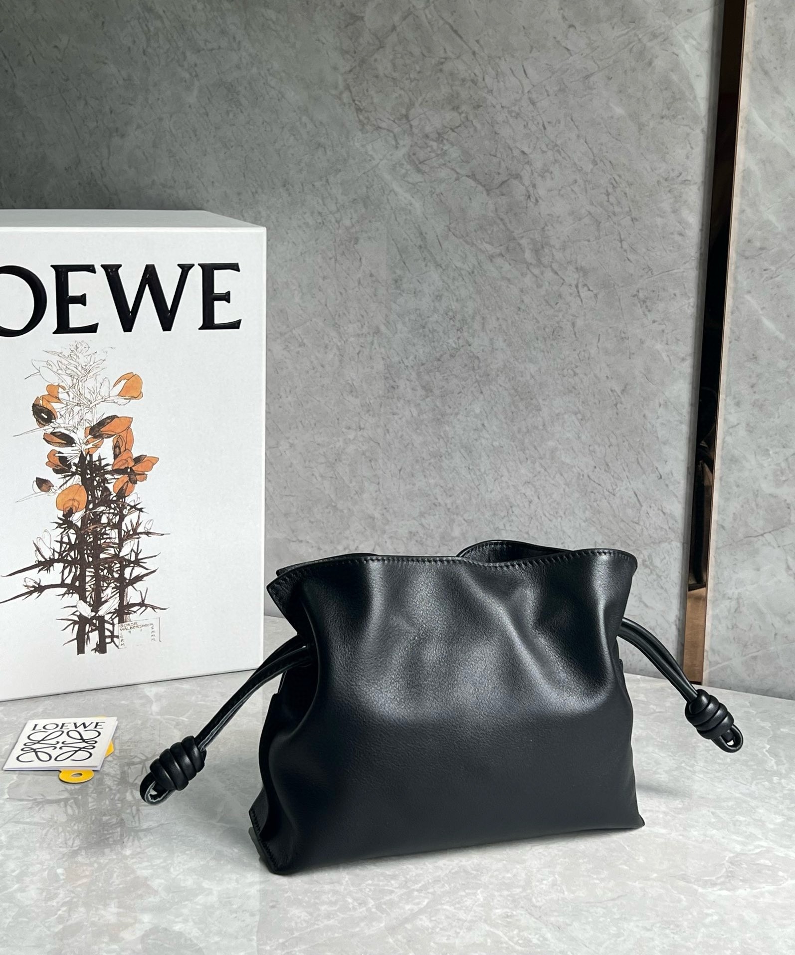 Loewe Mini Flamenco Clutch Bag in Black Nappa Calfskin