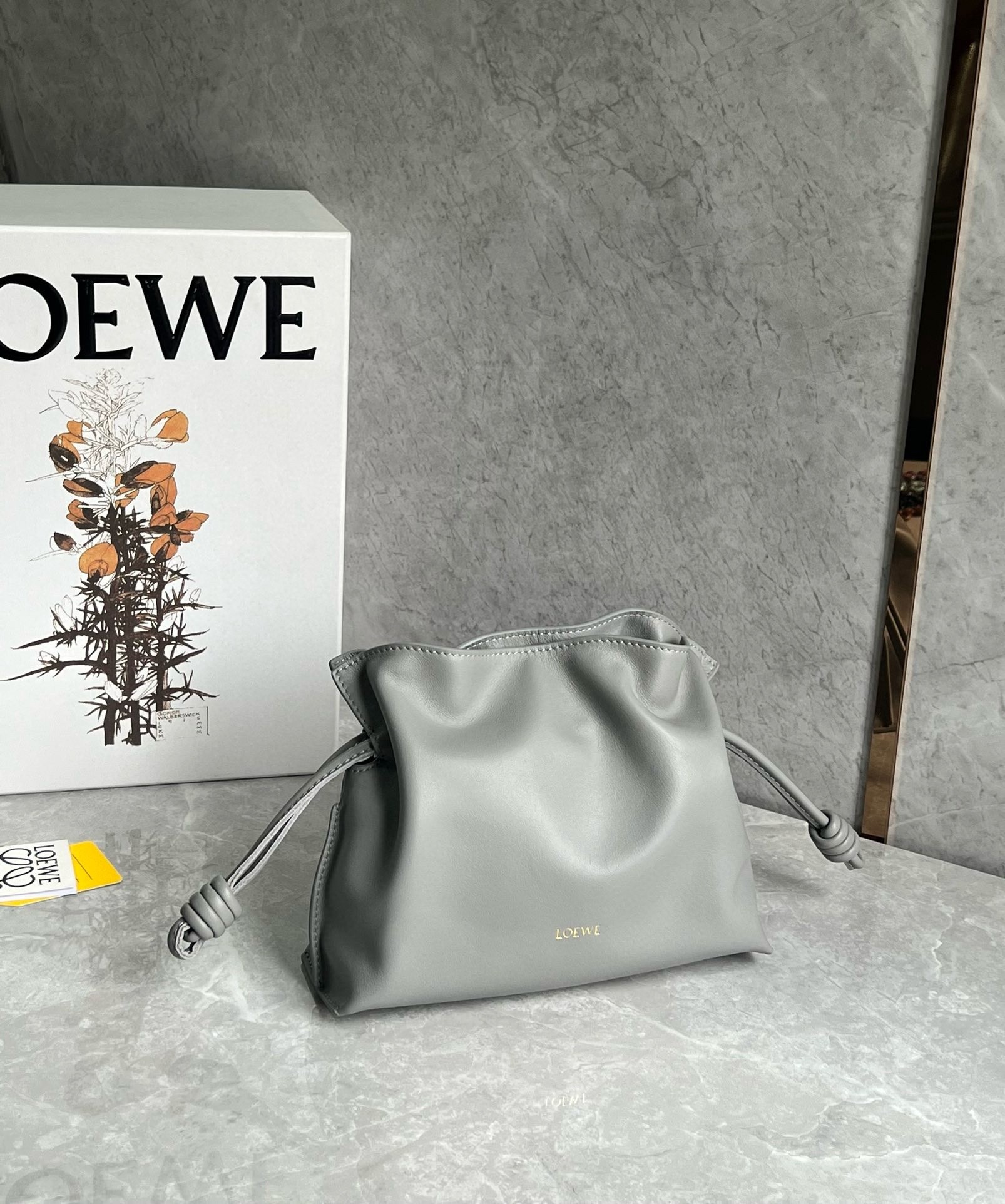 Loewe Mini Flamenco Clutch Bag in Pearl Grey Nappa Calfskin