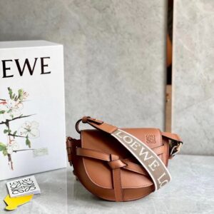 Loewe Mini Gate Dual Bag In Tan Calfskin