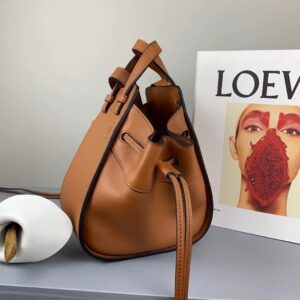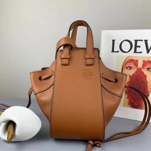 Loewe Mini Hammock Drawstring Bag In Brown Calfskin