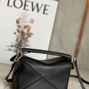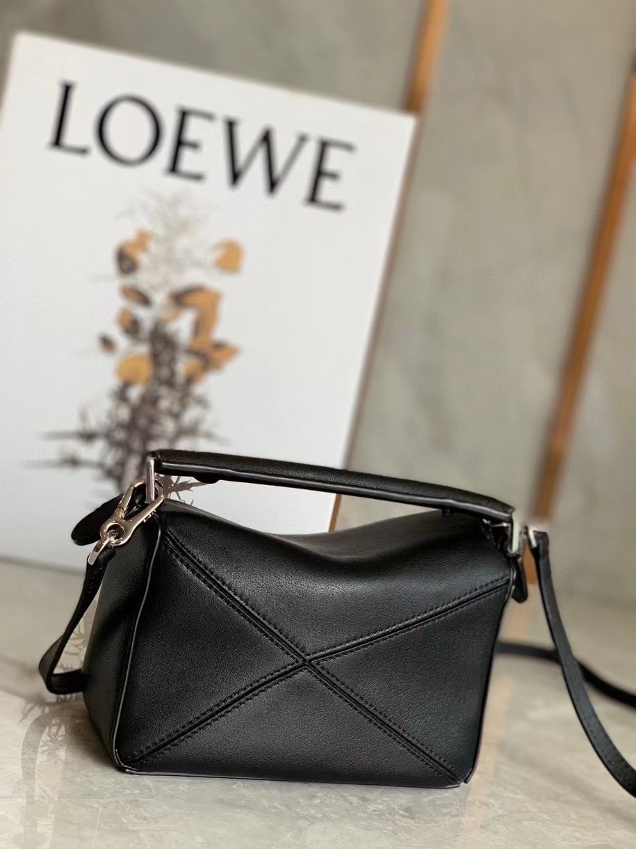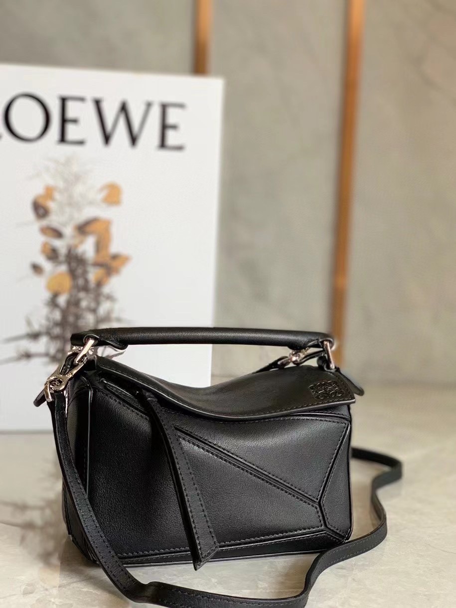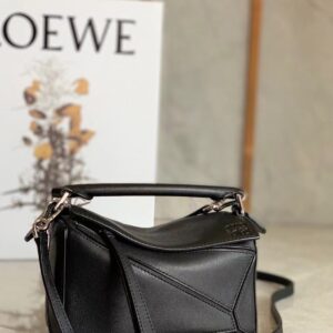 Loewe Mini Puzzle Bag In Black Calfskin Leather