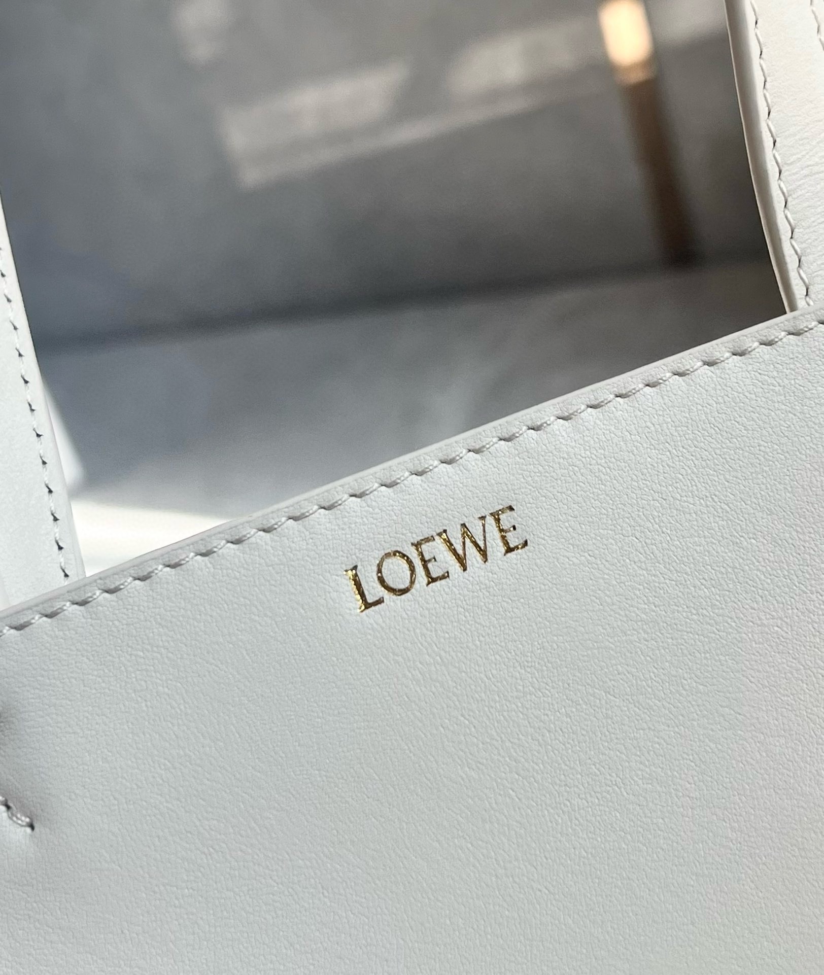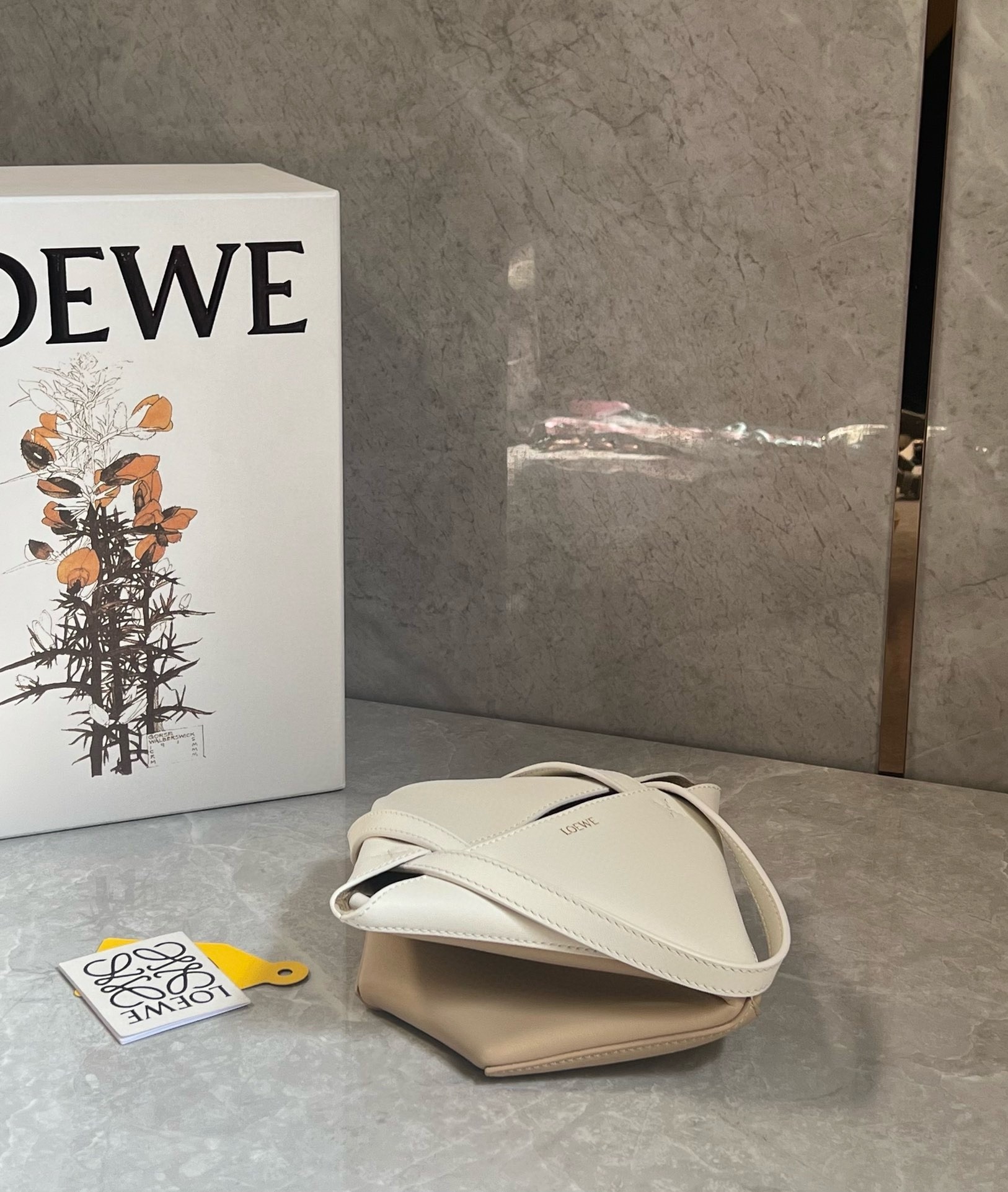 Loewe Mini Puzzle Fold Tote Bag in White/Beige Calfskin