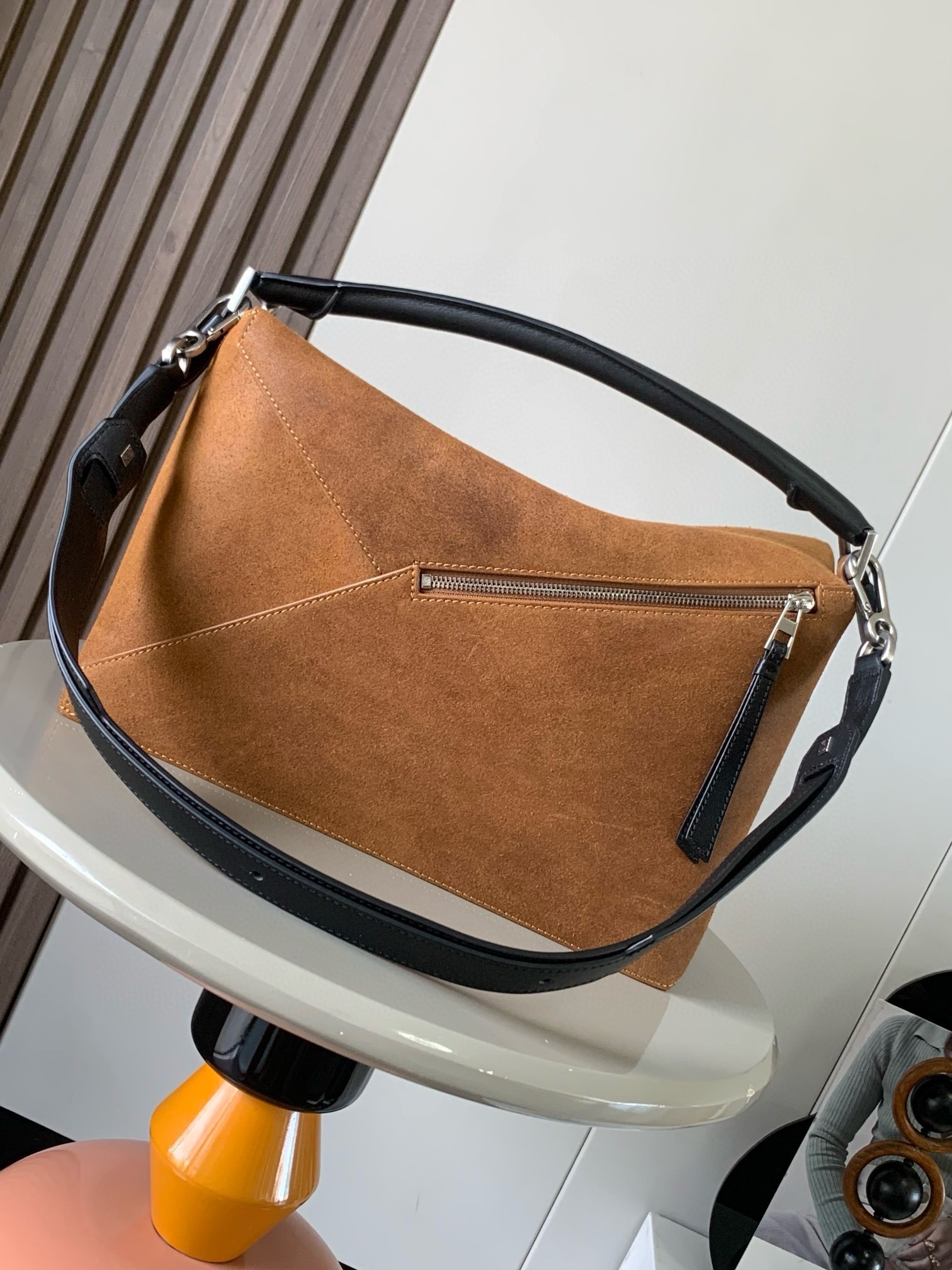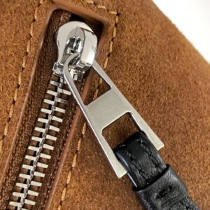 – Zip closure with calfskin pull