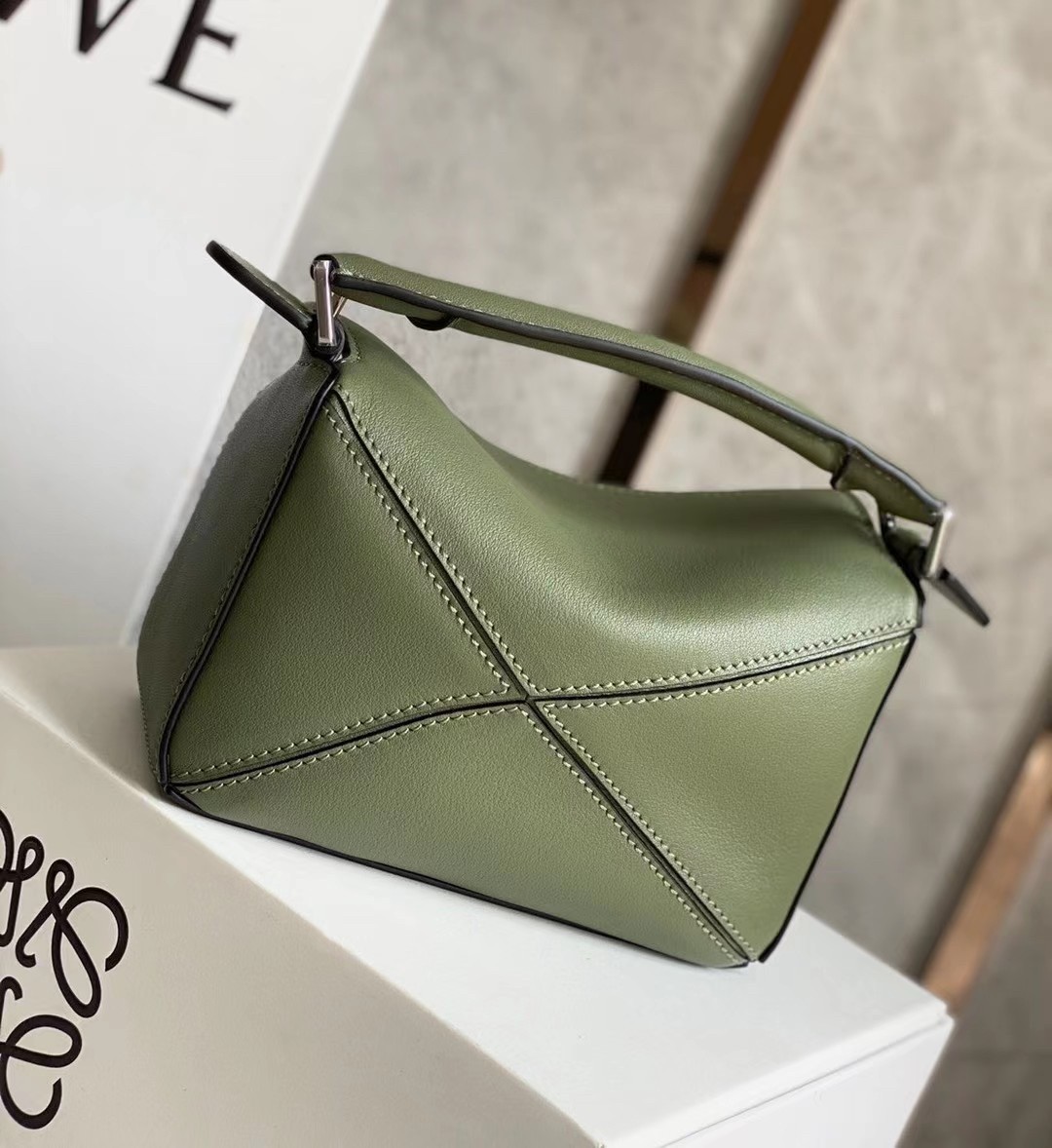 Loewe Puzzle Mini Bag In Avocado Green Calfskin