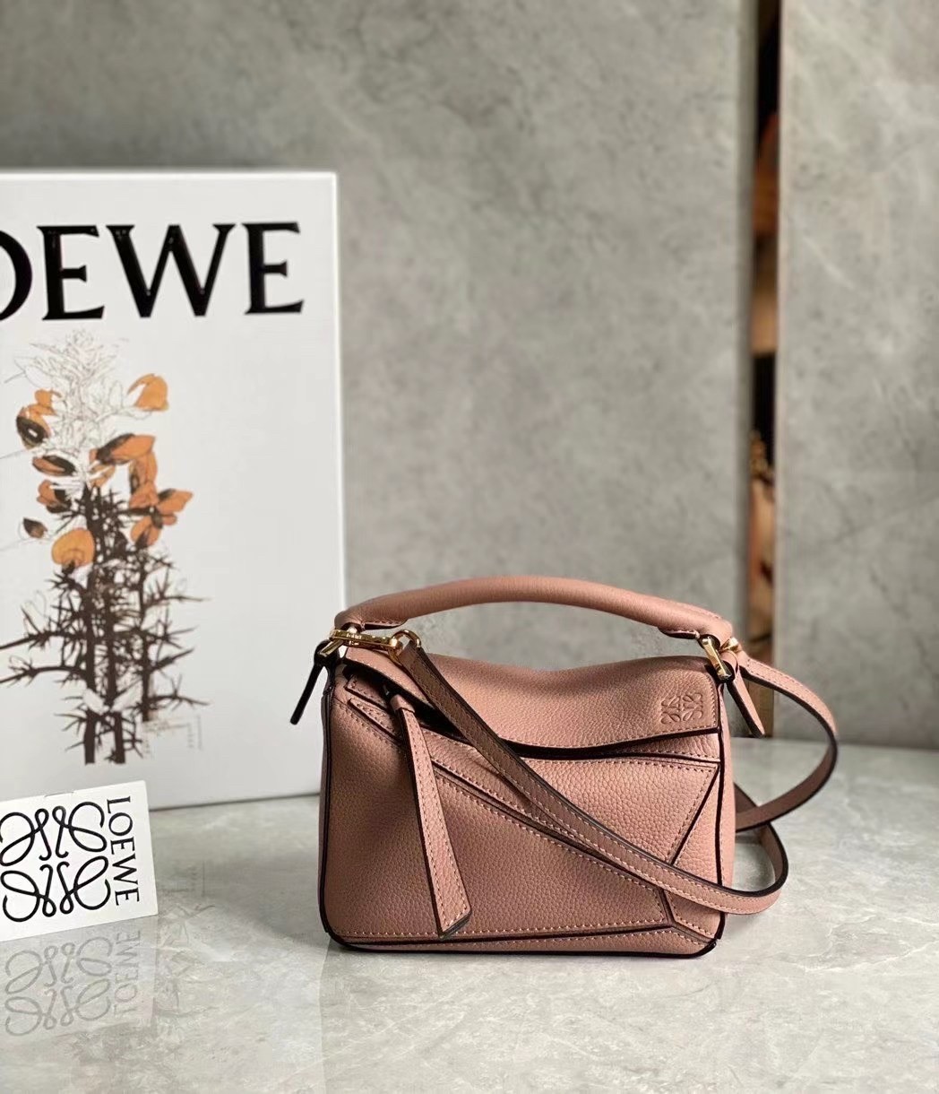 Loewe Puzzle Mini Bag In Dark Blush Grained Calfskin