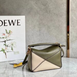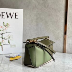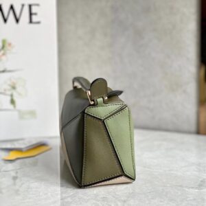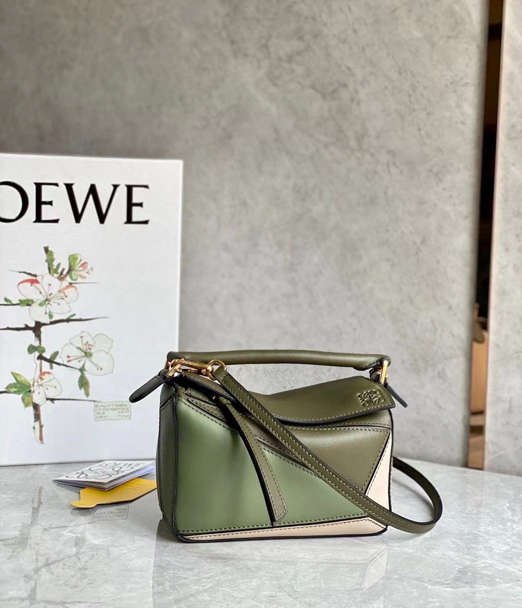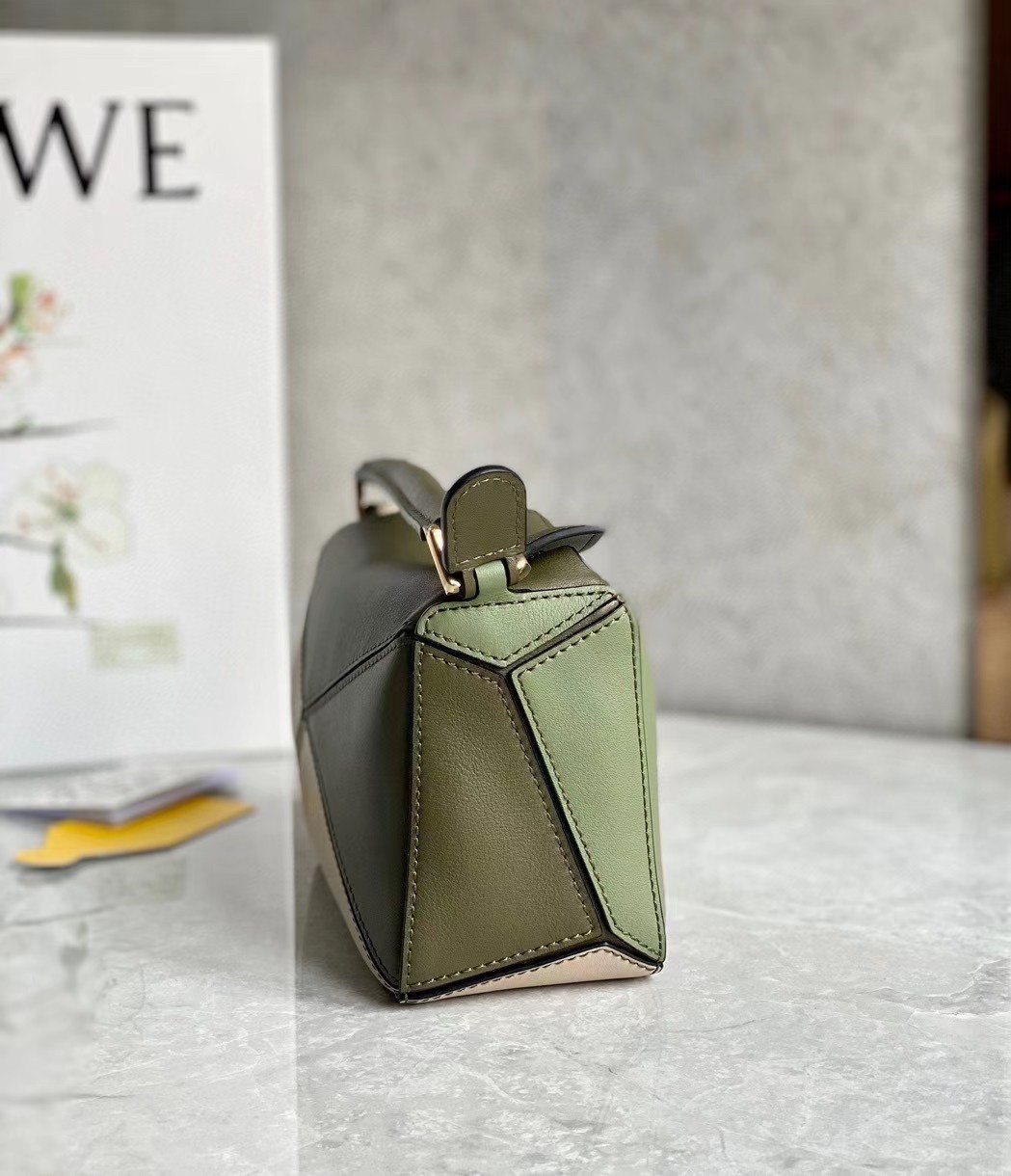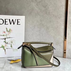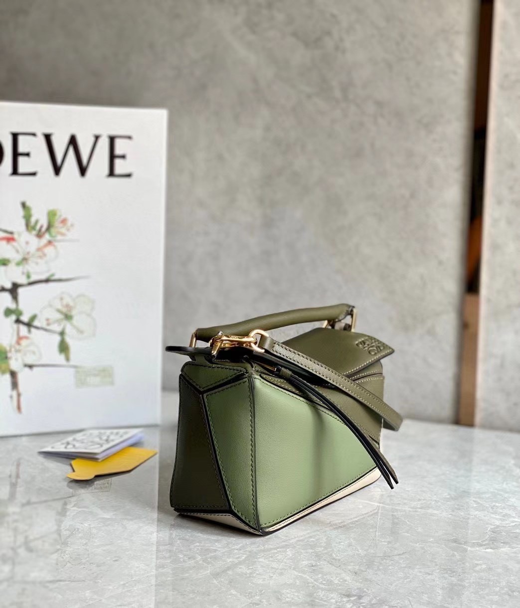 Loewe Puzzle Mini Bag In Green/Oat Calfskin