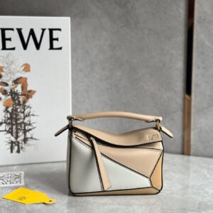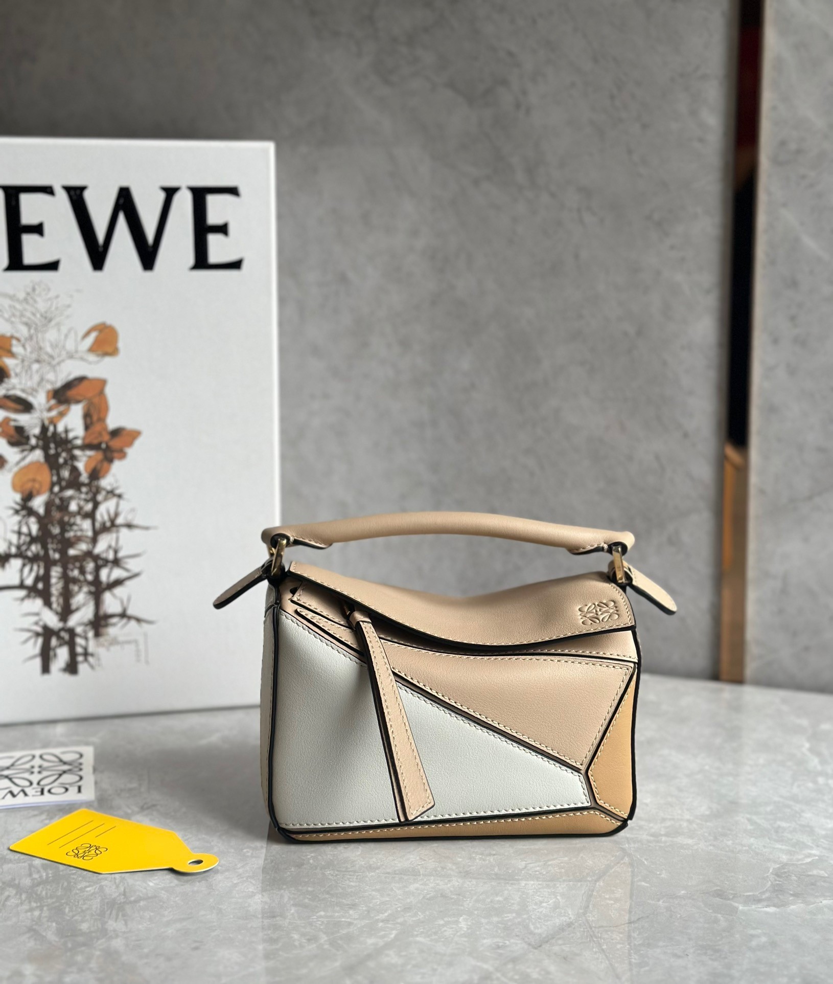 Loewe Puzzle Mini Bag In White/Warm Desert Calfskin
