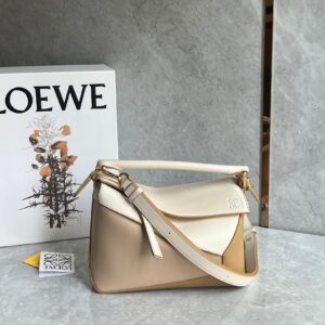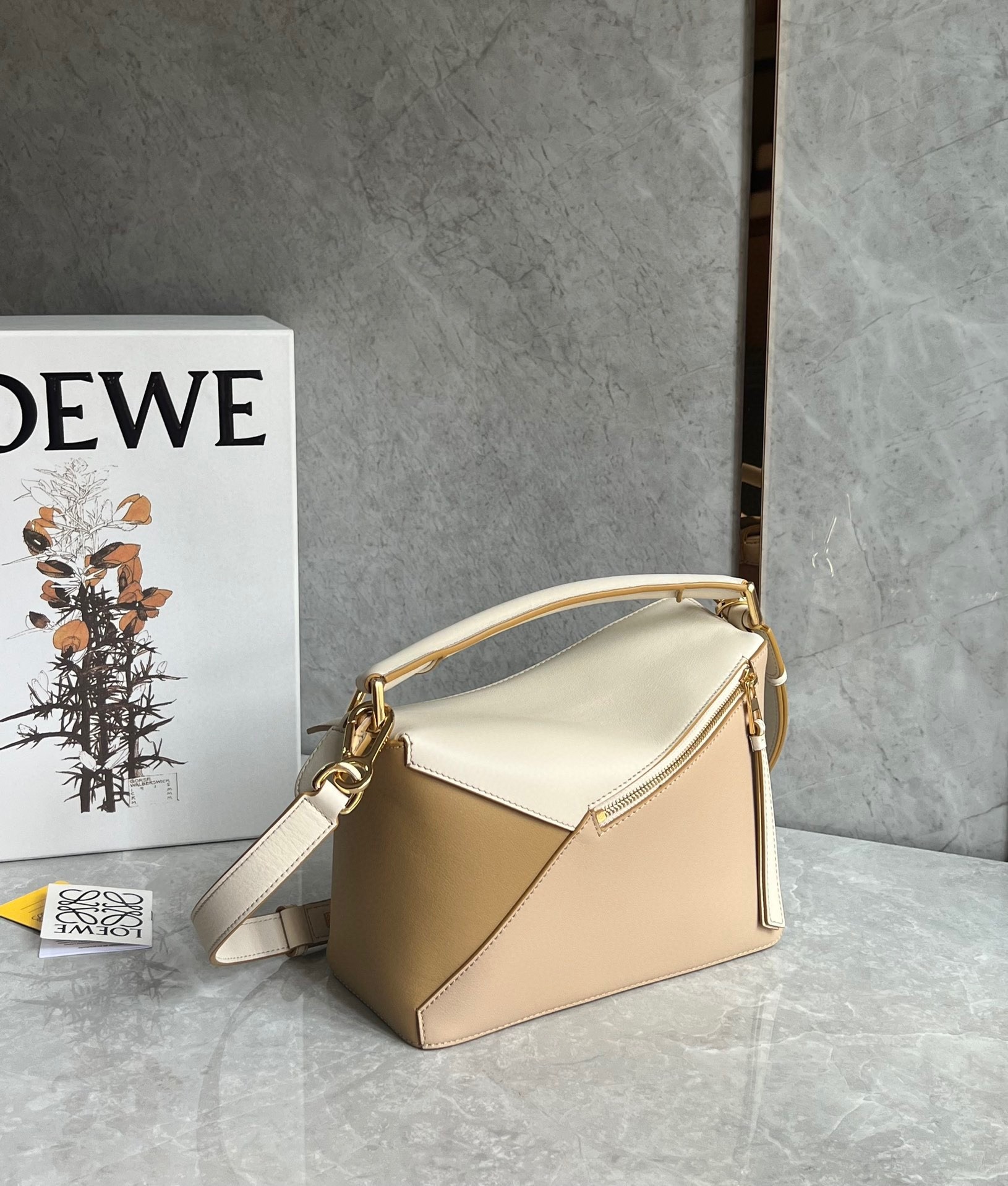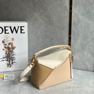 Loewe Puzzle Small Bag in Multicolor Angora and Beige Calfskin